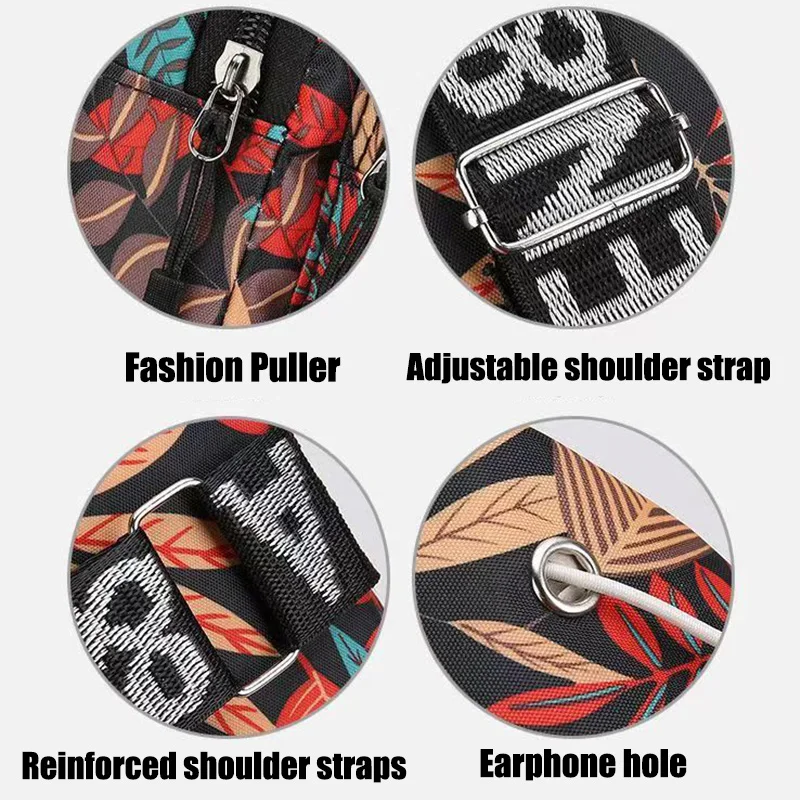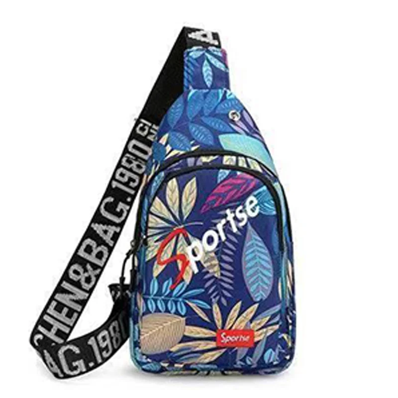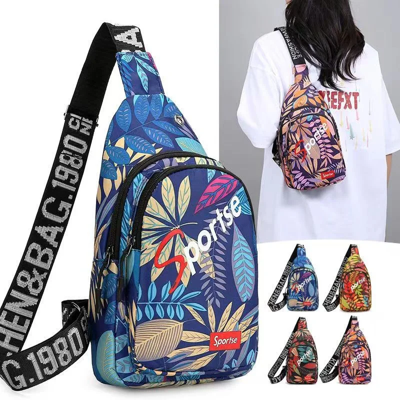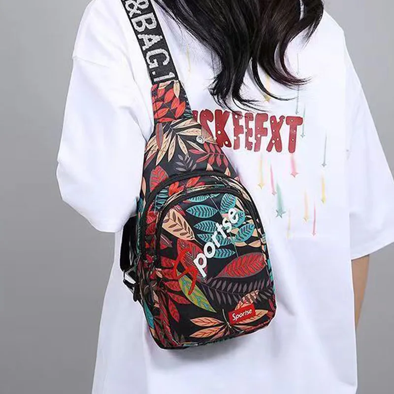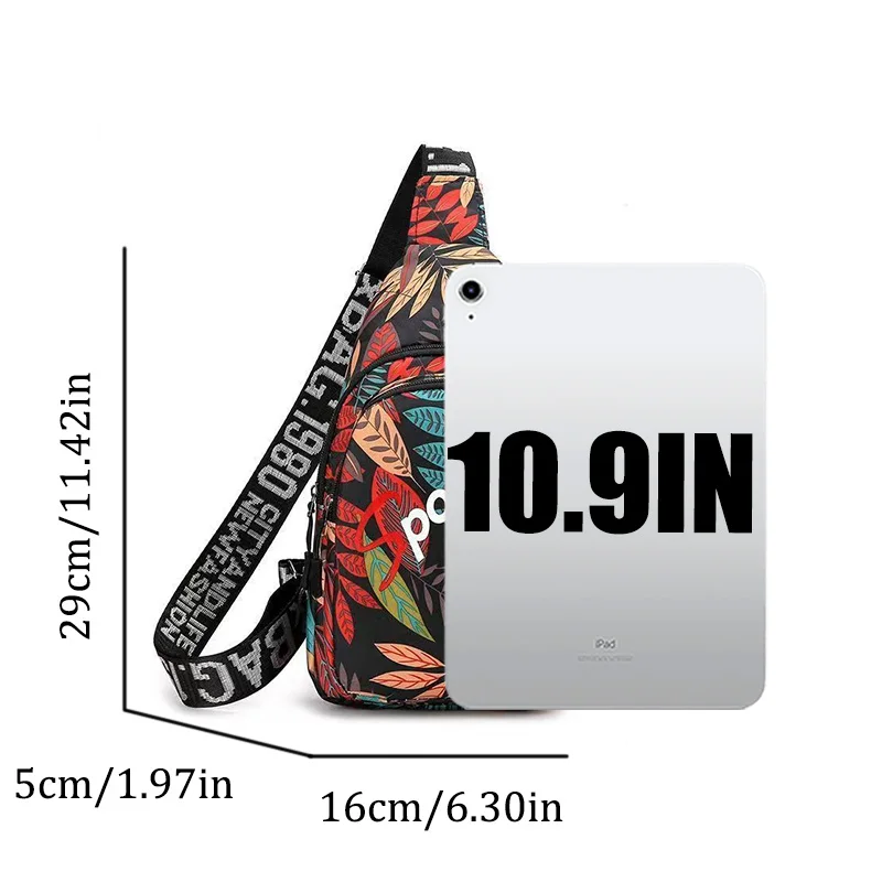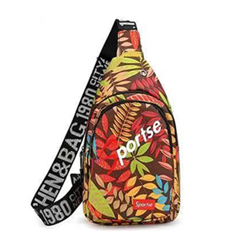 Sac de poitrine tendance pour femmes, écharpe Oxford légère avec imprimé feuilles, trou pour casque et sangle réglable pour le shopping et l'usage quotidien