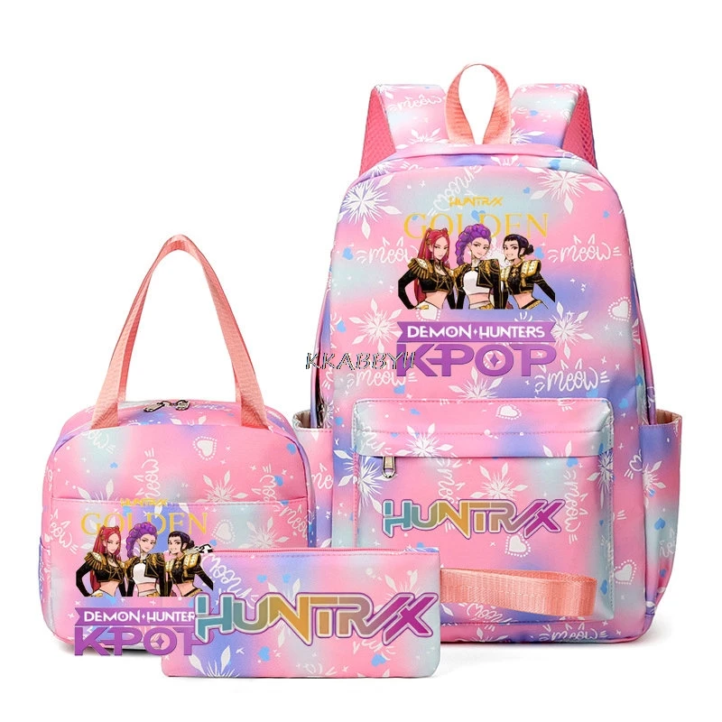 Sacs à dos K-pop Demon Hunters 3 pièces, imprimé neige, pour étudiants, filles, en nylon, mignons, pour adolescentes, Mochilas scolaires
