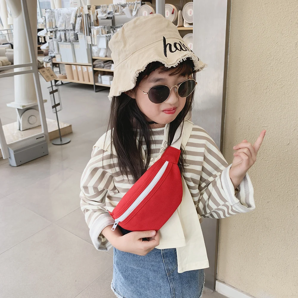 Sac de taille banane décontracté pour enfants filles, sac de ceinture de poitrine en toile pour femmes et filles, pochette à bandoulière avec fermeture éclair