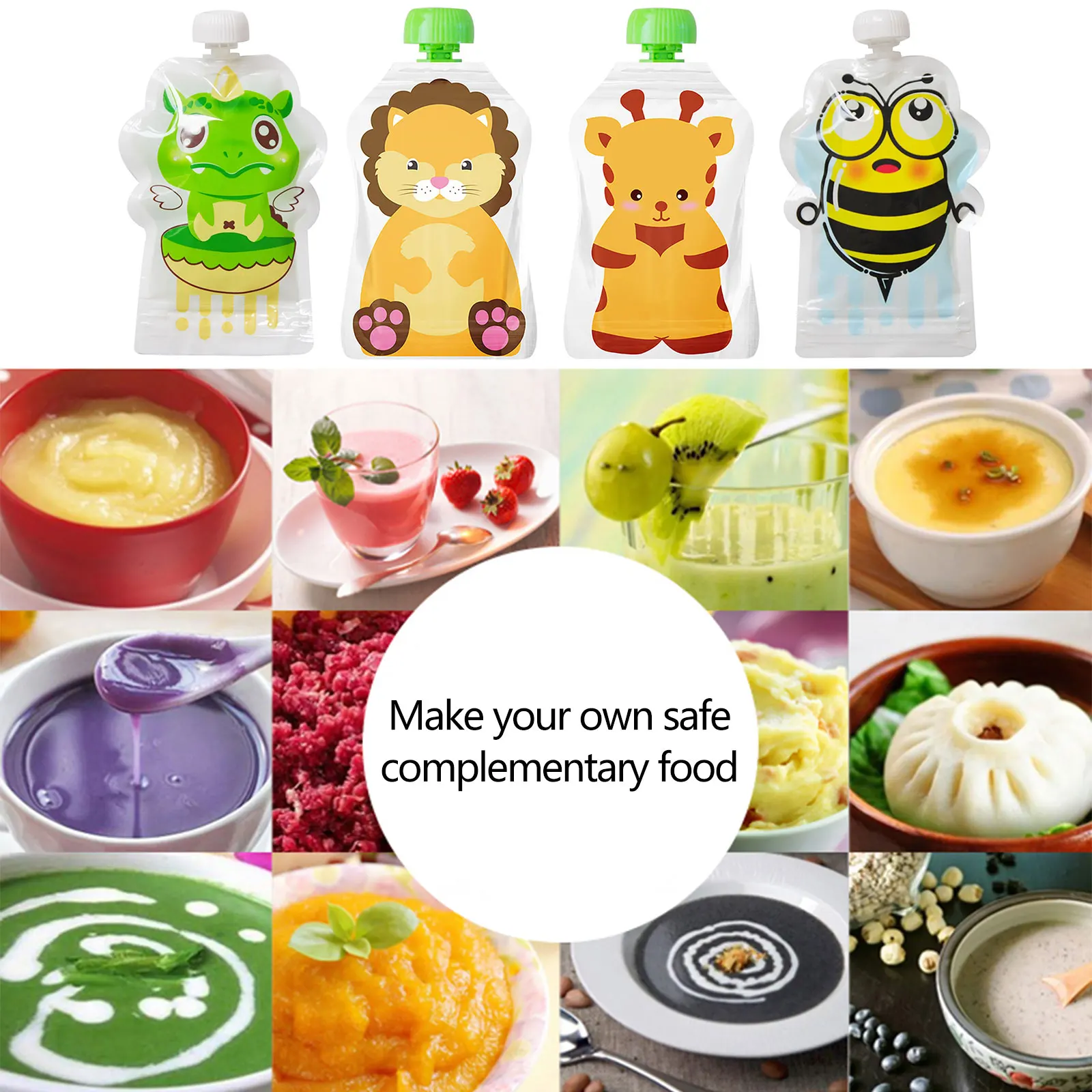 Sacs de conservation des aliments réutilisables, 8 pièces, scellés, rechargeables, pour Smoothie, bouillie, yaourt, lait, pochette pour aliments pour bébés, aléatoire