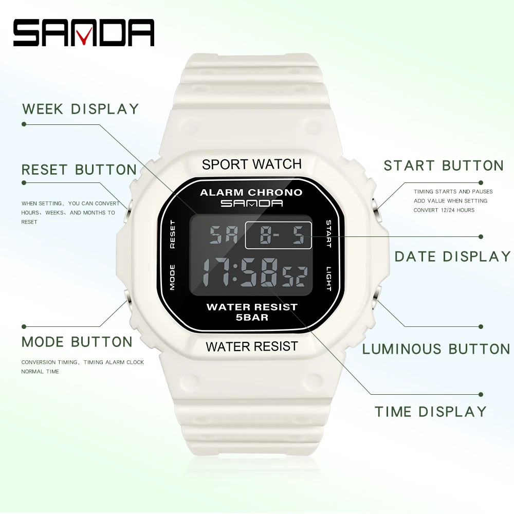 • Profondeur de résistance à l'eau de 5 bars : Avec une profondeur de résistance à l'eau de 5 bars, cette montre peut résister aux éclaboussures d'eau et à une brève immersion dans l'eau, ce qui la rend adaptée aux sports et aux activités de plein air.
