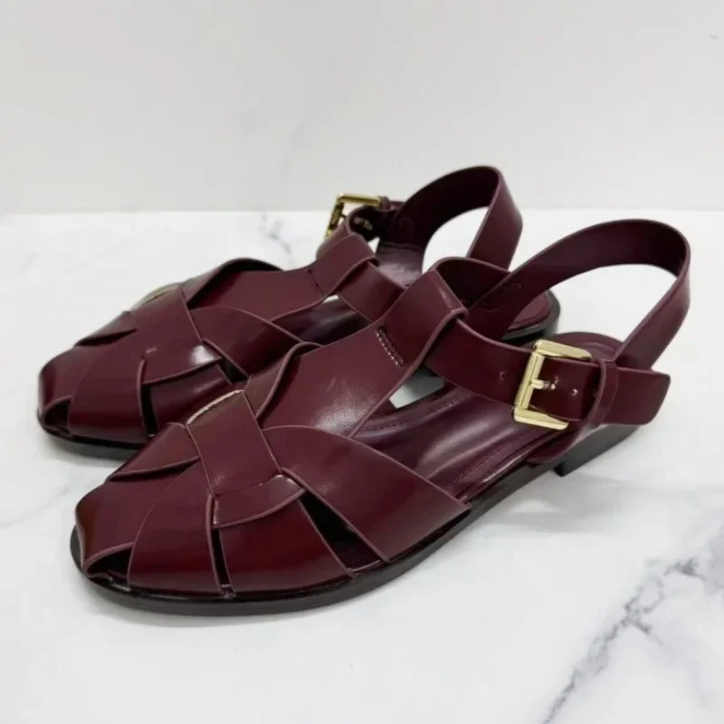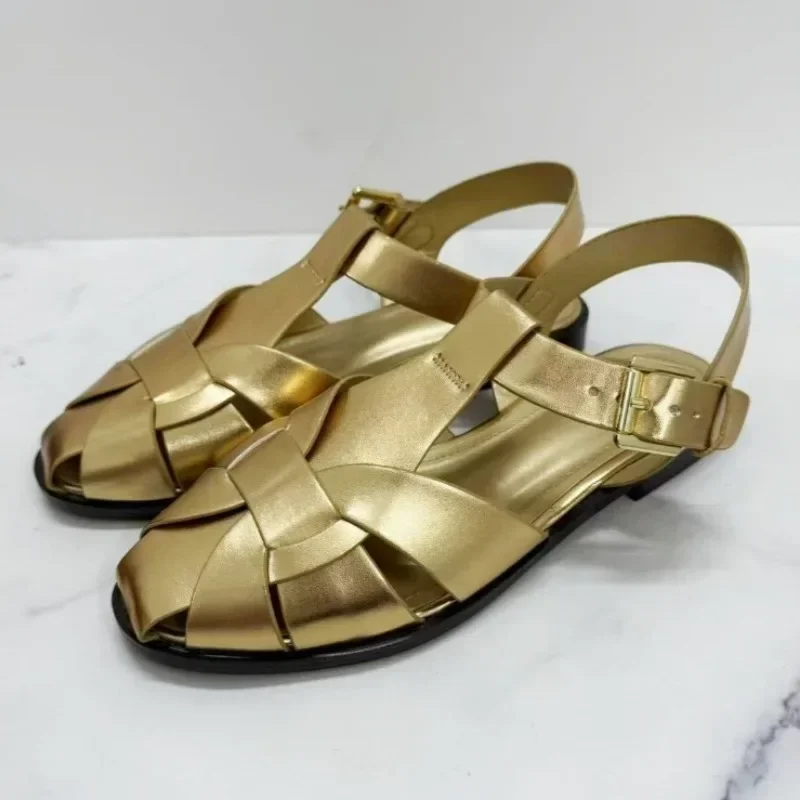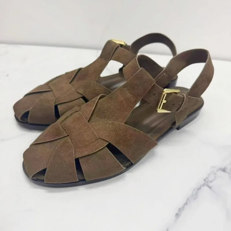 Sandales de créateur en daim tressé avec boucle métallique rétro, style gladiateur ajouré, pour femme, chaussures de plage plates été 2026, Zapatos De Mujer