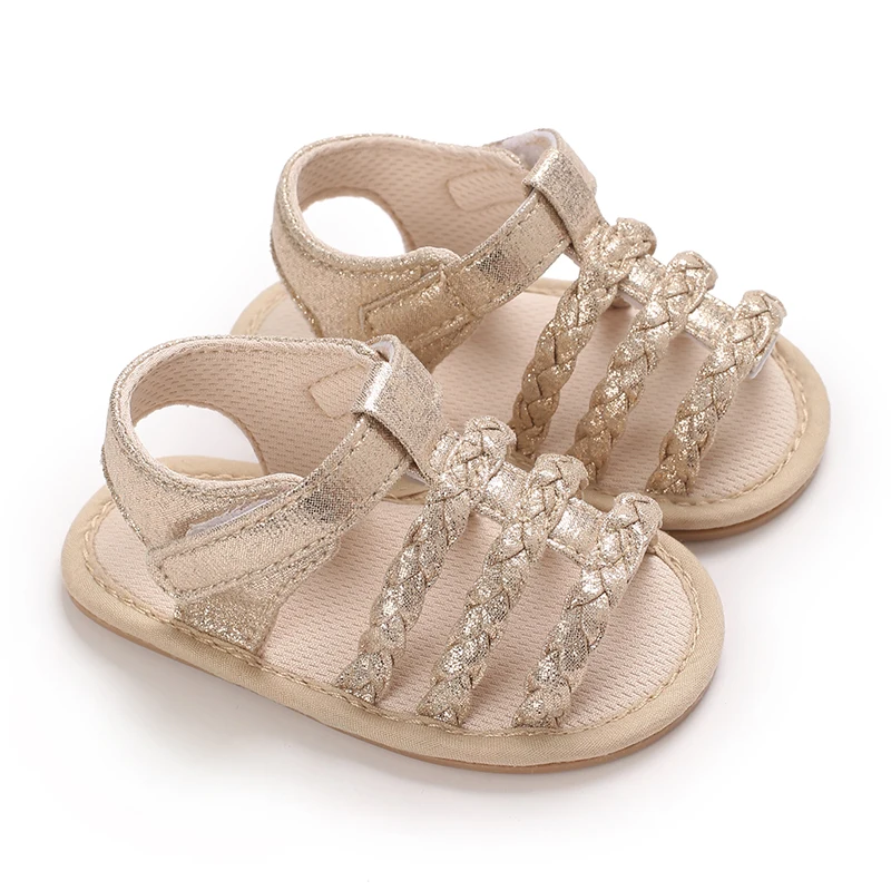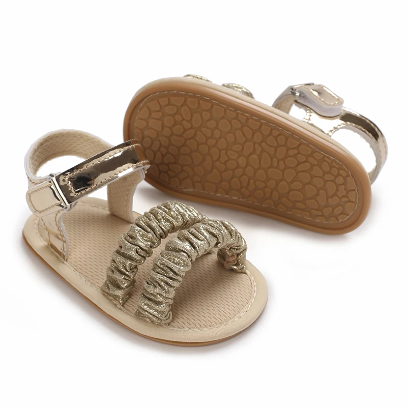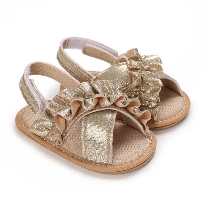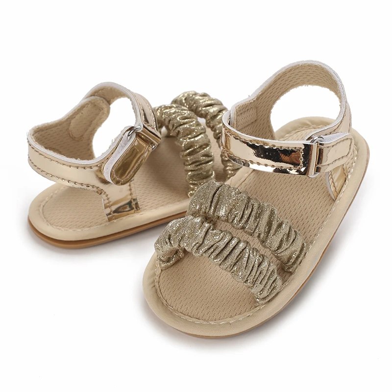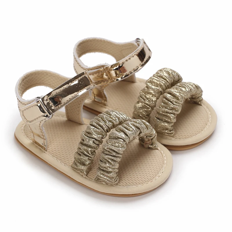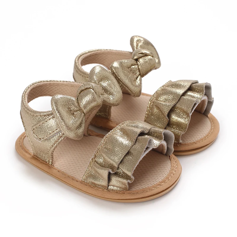 Sandales dorées pour bébé fille de 0 à 18 mois, avec nœud papillon, semelle souple de haute qualité, antidérapantes, bout exposé, été, première marche en plein air