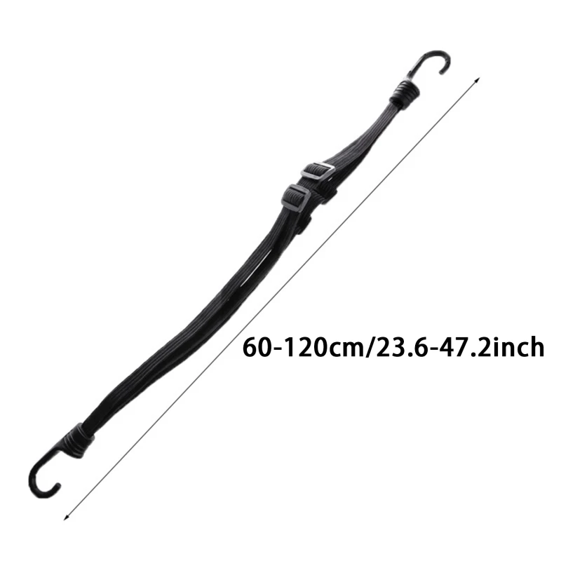 * La corde à bagages hautement élastique peut être étirée de 23,6/35,43 pouces à 43,3/62,99 pouces, parfaite pour attacher des casques de moto, des bagages, des boîtes, etc.