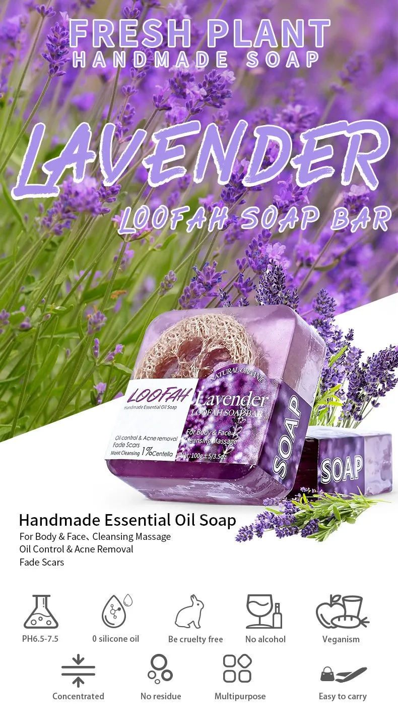 Savon Loofah à l'huile de lavande biologique, 100g, citron naturel, blanchissant, barre de lavage du visage et du corps