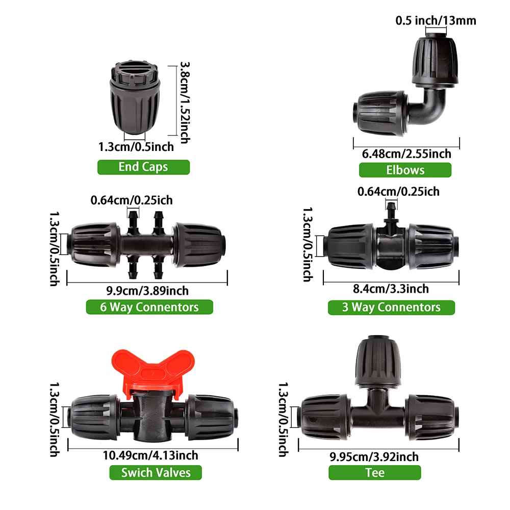 【Tuyau d'irrigation goutte à goutte d'installation】 : tournez le tuyau, faites-le glisser sur la barbe et serrez l'écrou. Dans votre système d'irrigation goutte à goutte, les bouchons de verrouillage peuvent résister plus fermement à l'impact de la pression de l'eau, permettant au tube et aux raccords goutte à goutte de fonctionner efficacement.