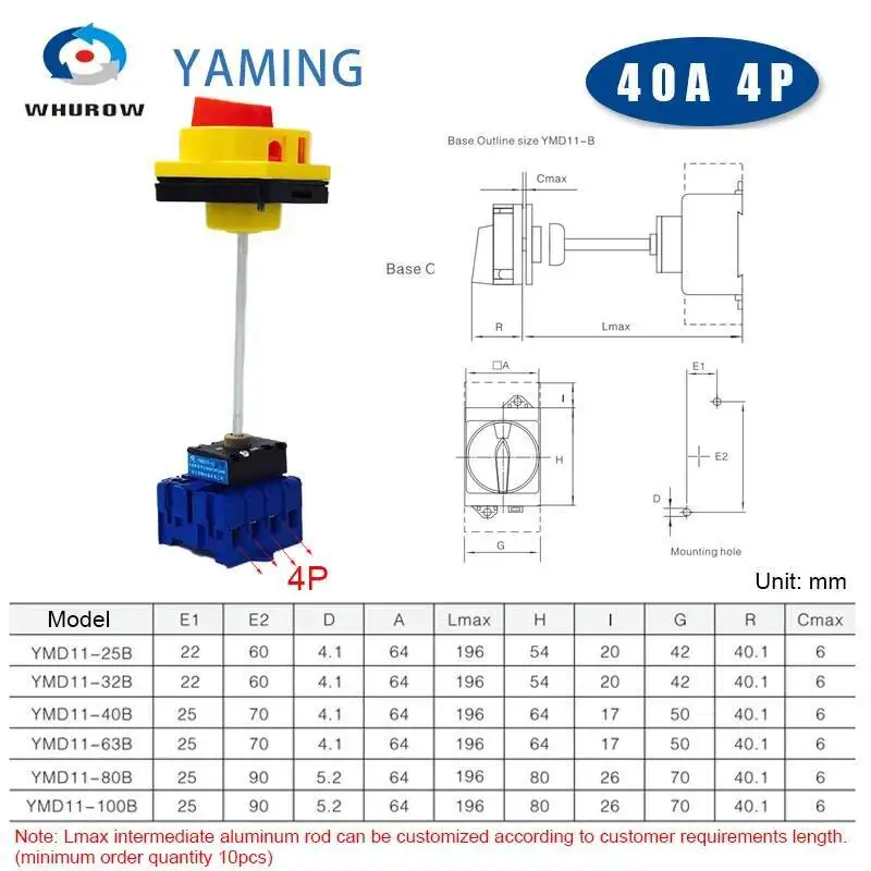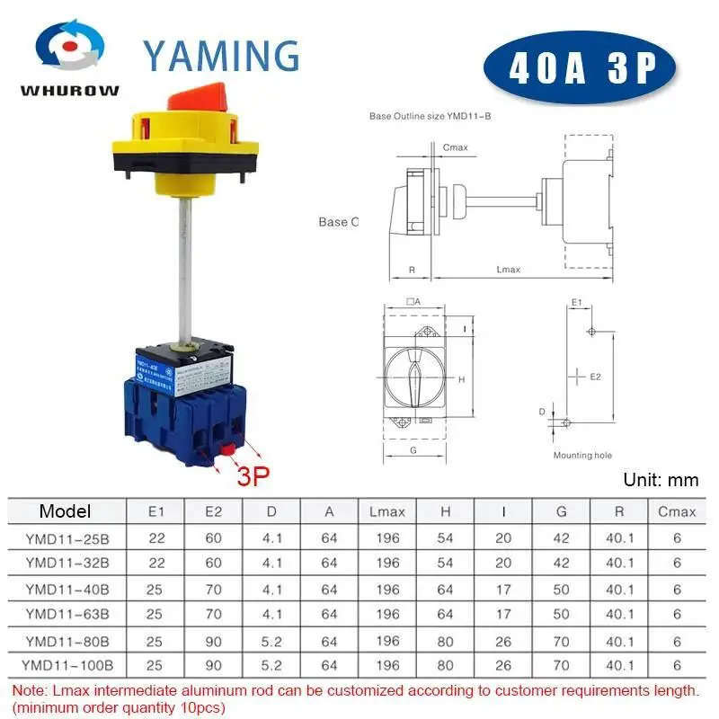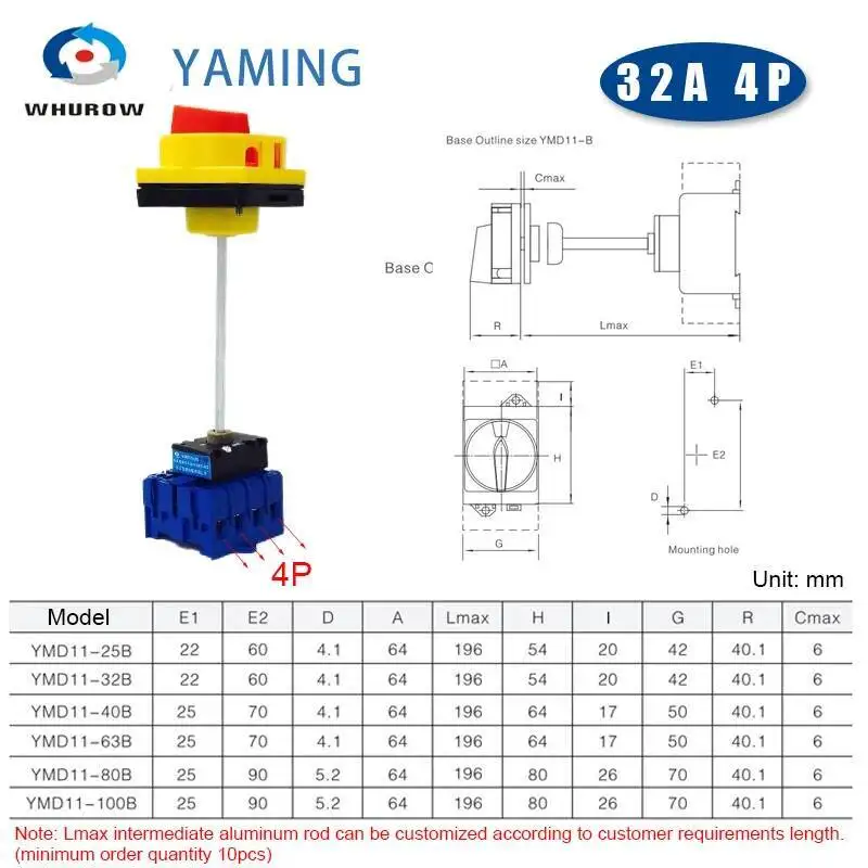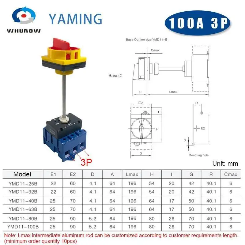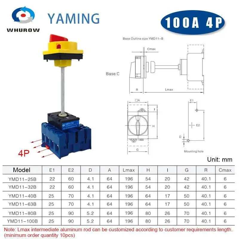 Série YMD11-B avec isolateur de poteau d'extension, panneau de verrouillage à patin, montage sur rail DIN 3/4P, sélecteur de came à distance marche-arrêt, remplacer LW30