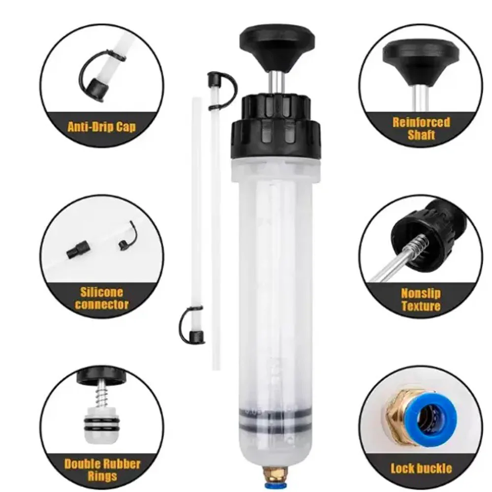 SYRINGE D'HUILE AUTOMOTIF MULTI-USAGES - Extracteur d'huile léger et sans fuite, un ajout pratique à votre bote à outils.Idéal pour extraire et remplir le liquide de direction assistée, le liquide de frein, l'antigel, l'huile d'engrenage, le liquide de refroidissement, les huiles moteur, l'huile de transmission.Parfait pour enlever ou changer diverses huiles dans les voitures, motos, bateaux, camions, tondeuses à gazon, camping-cars, VTT, équipements agricoles, botes de vitesses industrielles, etc.