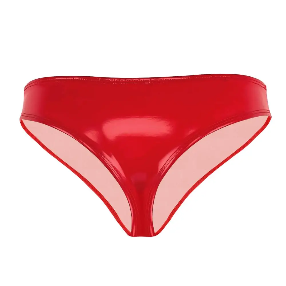 Sexy femmes chaud court huile brillant taille basse court PVC PU Faux cuir slips exotiques femme de chambre Punk danse porter grande taille