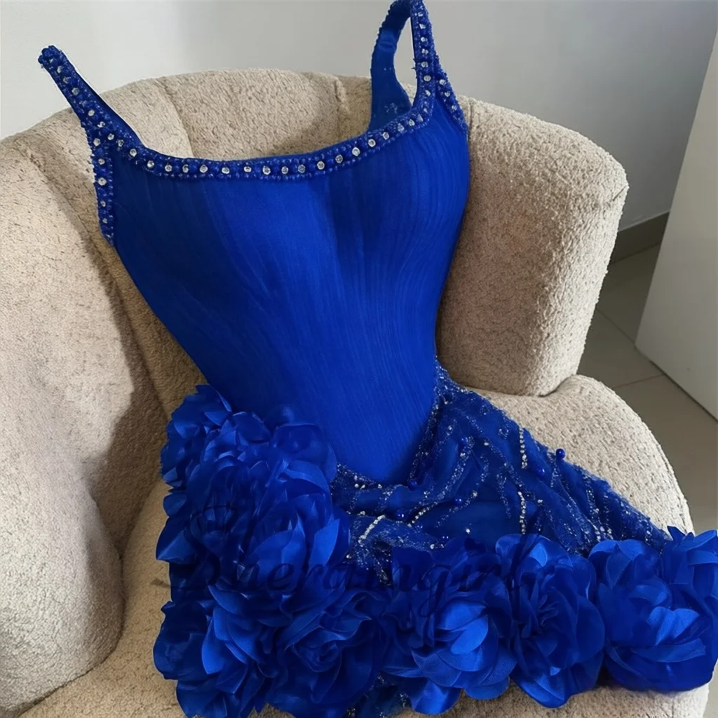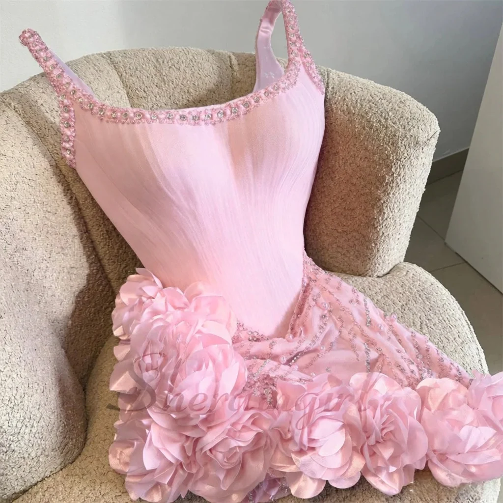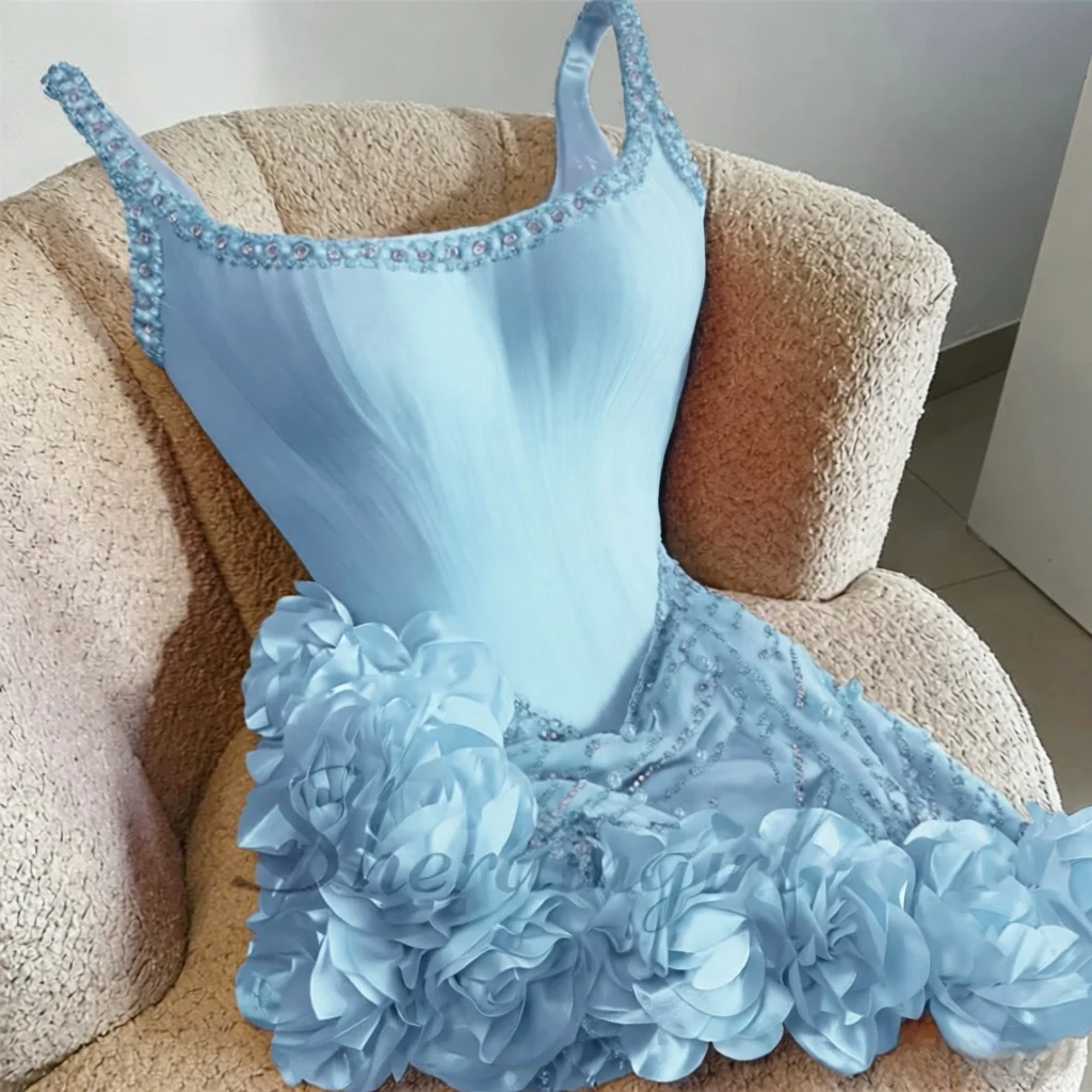 SHERAIN Robe de Cocktail Délicate à Fines Bretelles, Strass, Fleurs 3D, Encolure Ronde, Robes de Soirée Courtes, Vestidos De Festa, Personnalisable.