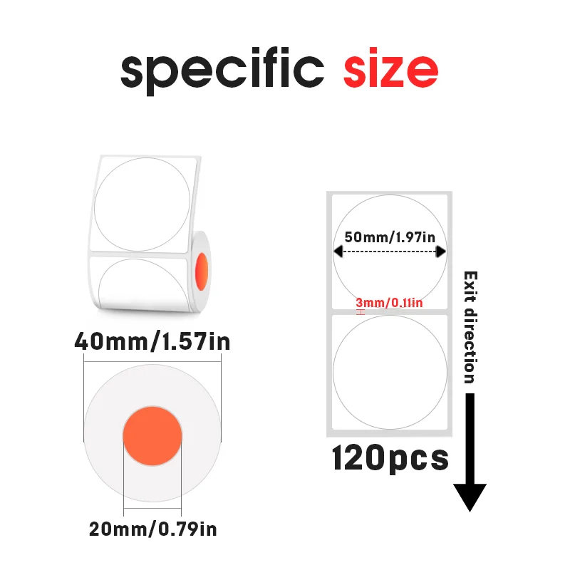 SINMARK – étiquette thermique ronde de couleur de 50mm, cercle en papier, étiquettes imperméables, étiquettes cadeaux, autocollants auto-adhésifs à utiliser pour imprimante Portable Spécifications : Nom du produit : étiquette autocollante thermique (papier d'étiquettes autocollant). Couleur : rose, bleu, jaune, vert, blanc. Taille: 50mm-120 pièces/rouleau Diamètre intérieur du rouleau : 20 mm Diamètre extérieur du rouleau : 40 mm Avantages : facile à décoller, impression claire, imperméable, adhésif puissant, résistance aux hautes températures, résistant à la décoloration, non corrosif, etc. Degré d'étanchéité: étanche à la vie quotidienne Attention : Les imprimantes généralement portables qui ne sont pas cryptées peuvent utiliser notre papier. Si votre imprimante spécifie le type de papier d'étiquette à utiliser, veuillez d'abord vérifier et passer votre commande avec prudence.