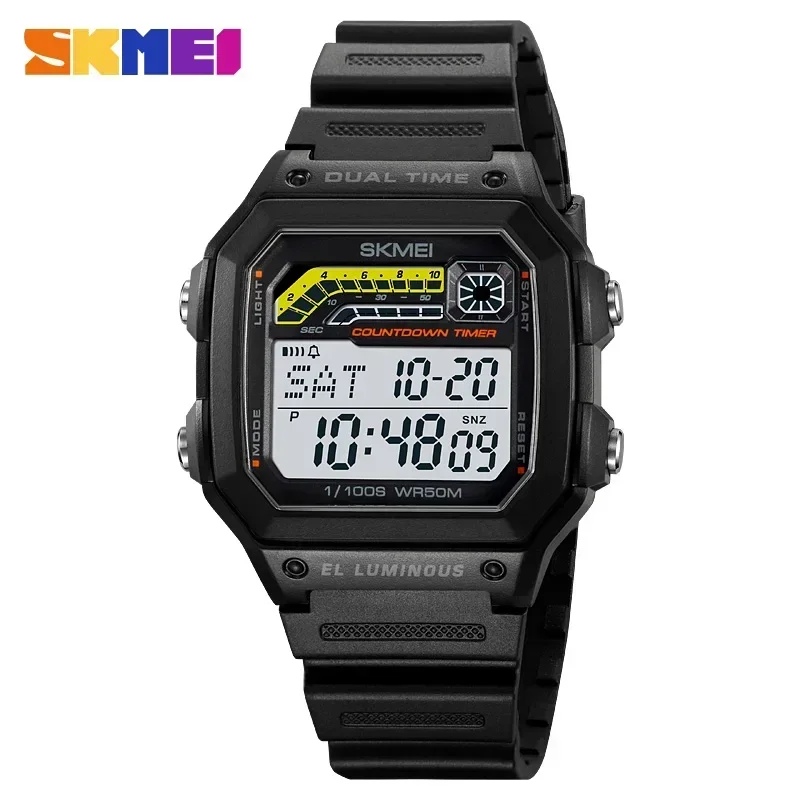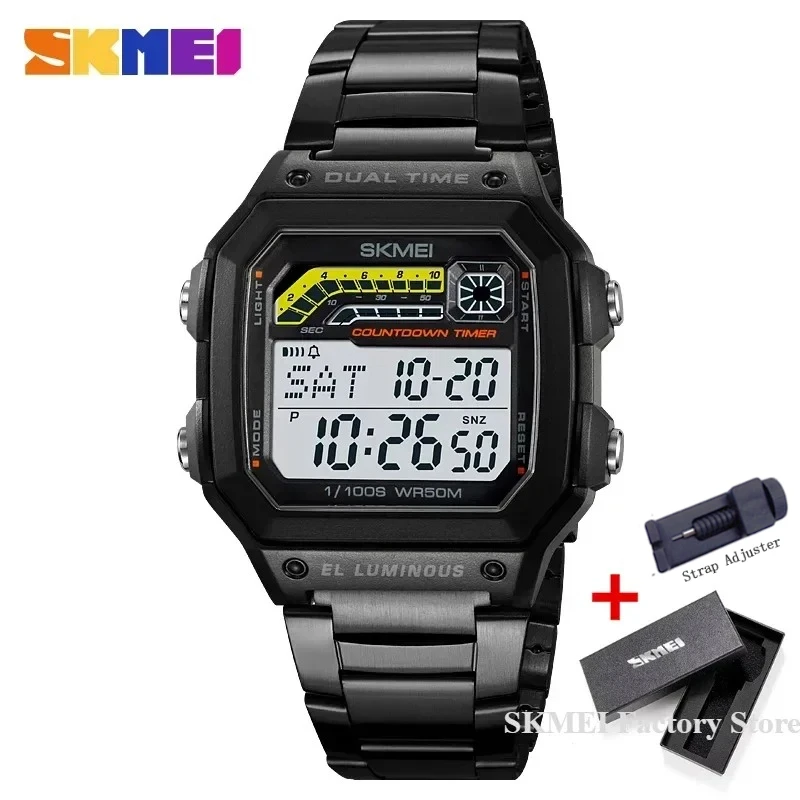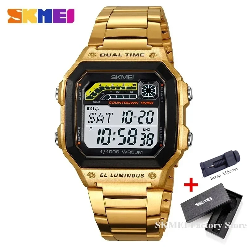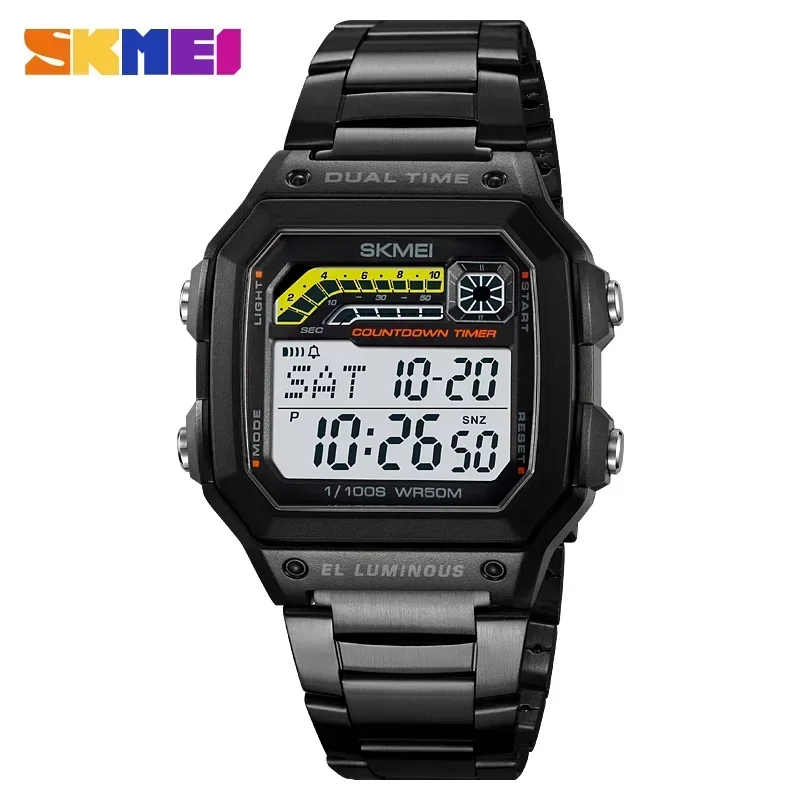 SKMEI 2307 compte à rebours de luxe affichage LED en acier inoxydable montres pour hommes étanche sport montre numérique pour hommes antichoc