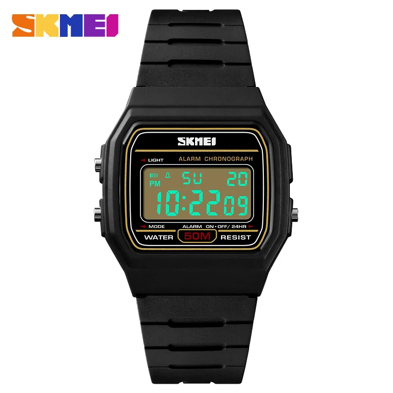 Fonctions : chronomètre, résistant à l'eau 50 M, réveil, horloge 12/24 heures, lumière EL, date, semaine.