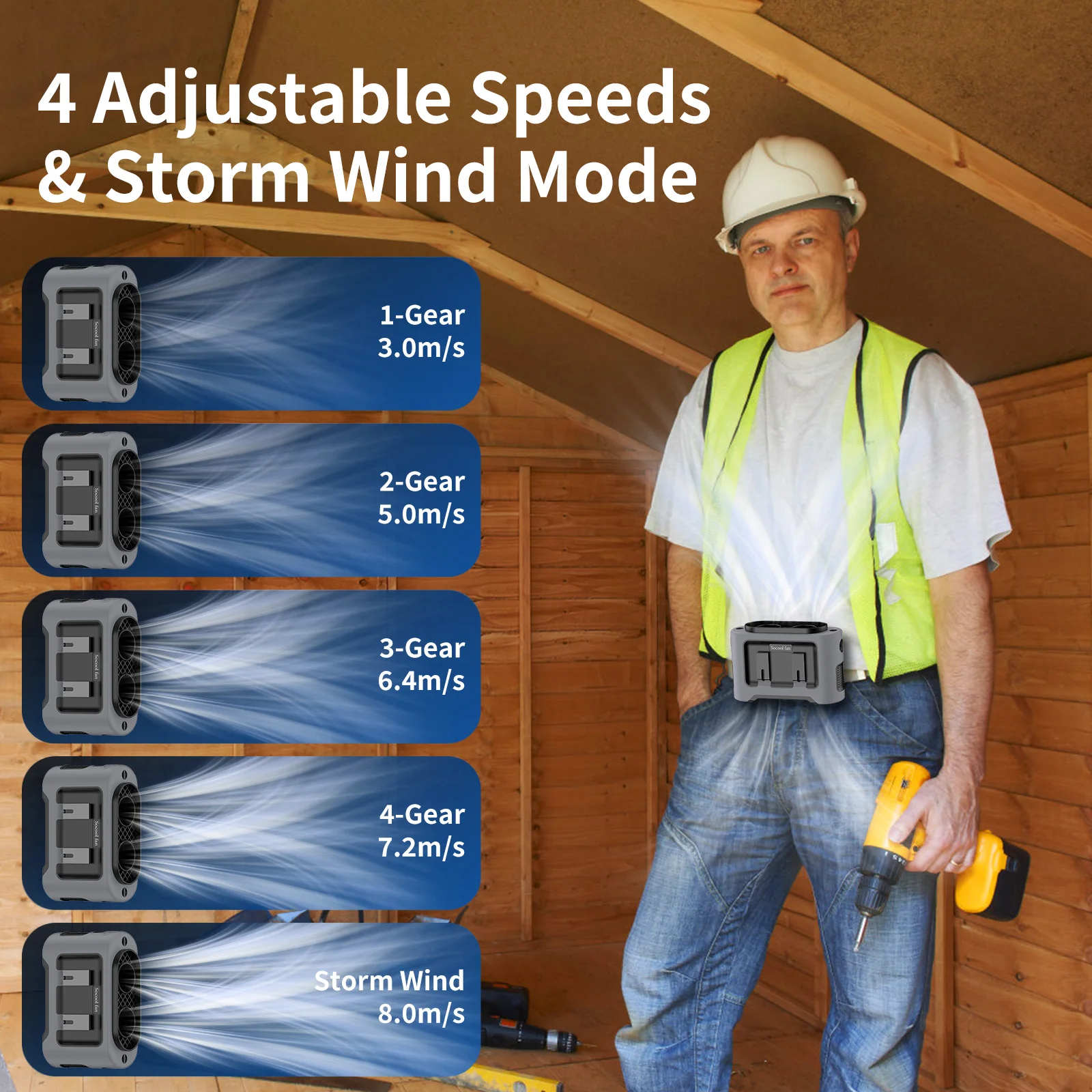 Socool Ventilateur de Taille Portable 14500mAh, Double Sortie d'Air, Moteurs Turbo, Quatre Clips, Lampe de Poche d'Urgence pour l'Extérieur
