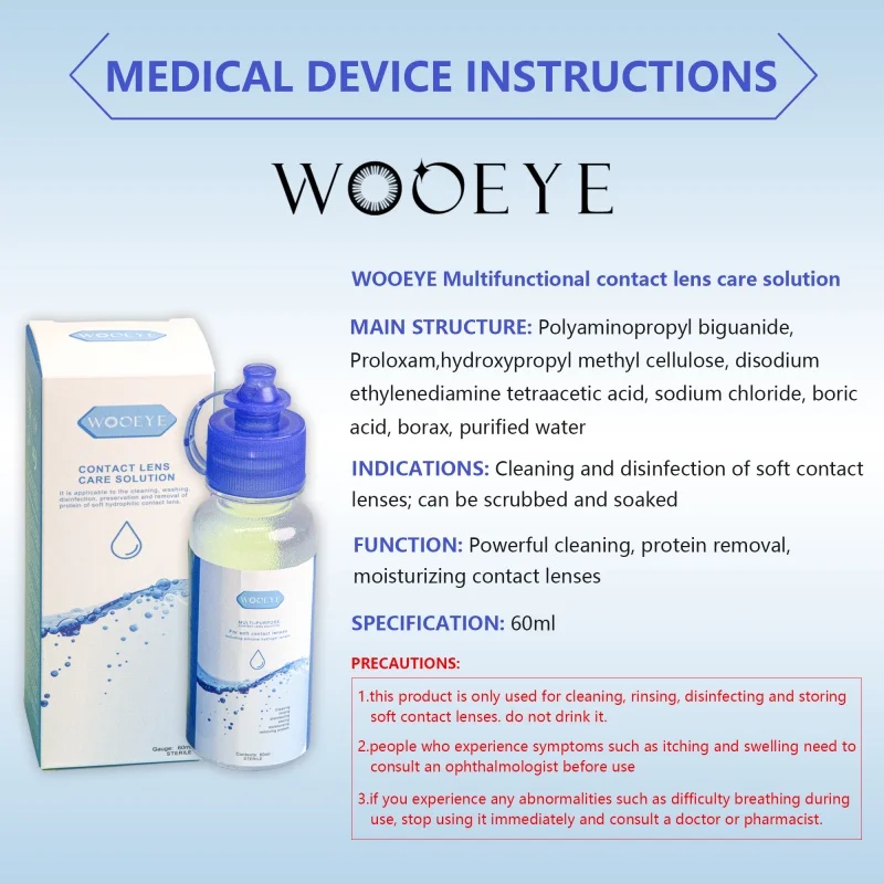 2.Stérilisation efficace, sûre et sans souci : notre solution d'entretien utilise des formules de nettoyage avancées et une technologie de désinfection pour éliminer efficacement la saleté des lentilles de contact.