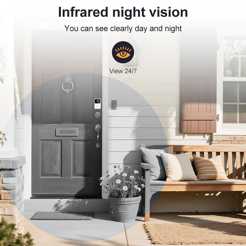 Surveillez sans effort votre porte avec un système à objectif unique, offrant un large champ de vision.