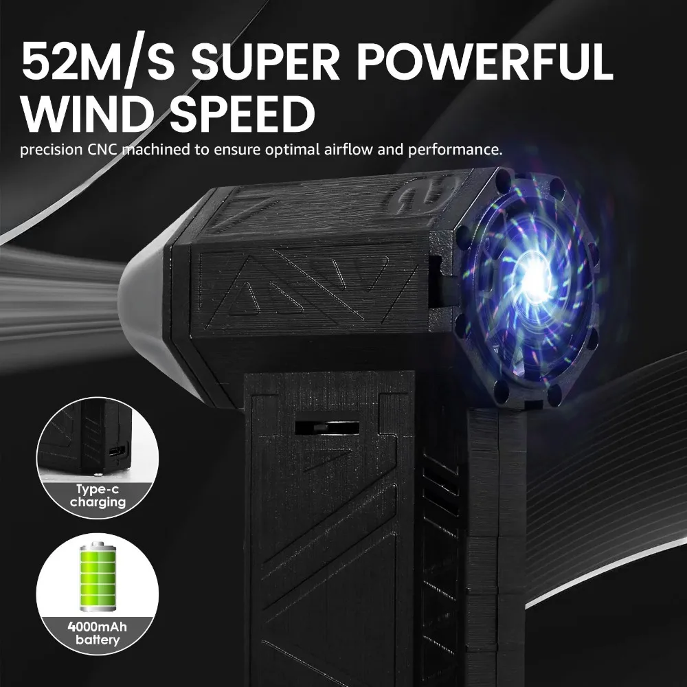 Artisanat haut de gamme : ce mini souffleur sec à jet est doté d'excellents roulements à grande vitesse, d'une turbine métallique, d'un moteur sans balais et d'une buse à clipser, garantissant efficacité, puissance et durabilité.