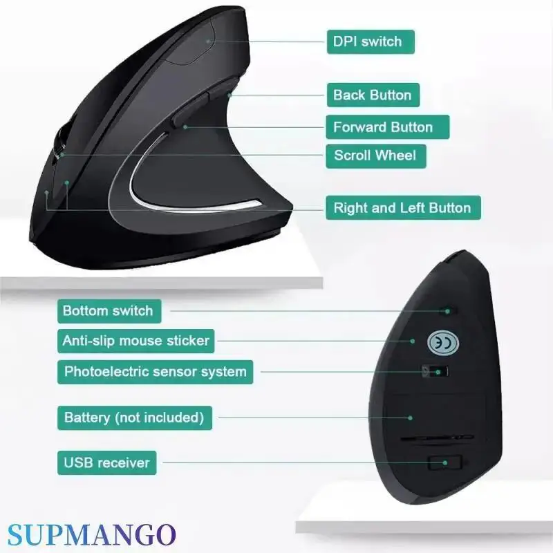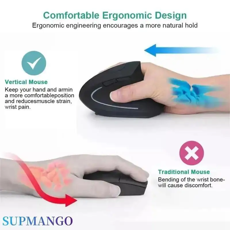 • Conception ergonomique :La souris verticale SUPMANGO présente un design ergonomique, conçu pour réduire la fatigue des mains et favoriser une posture saine lors de l'utilisation de votre ordinateur ou ordinateur portable.