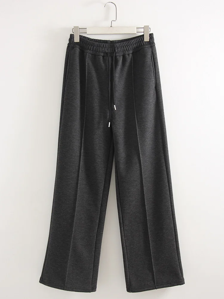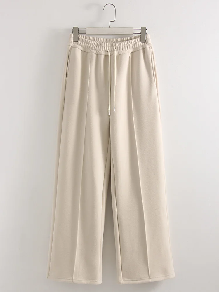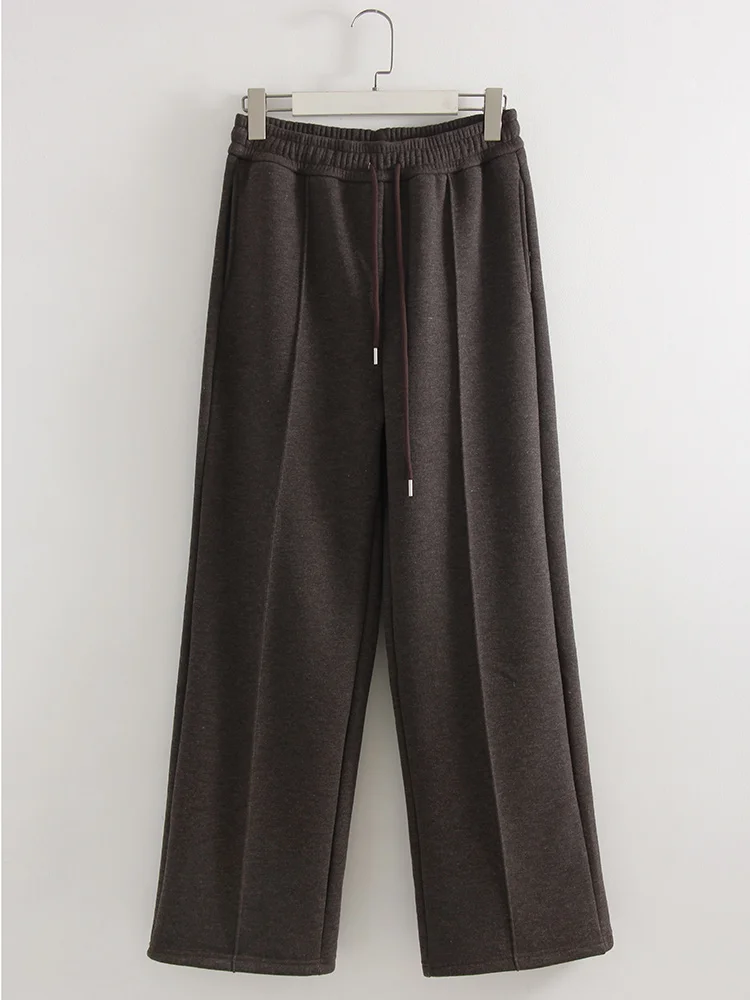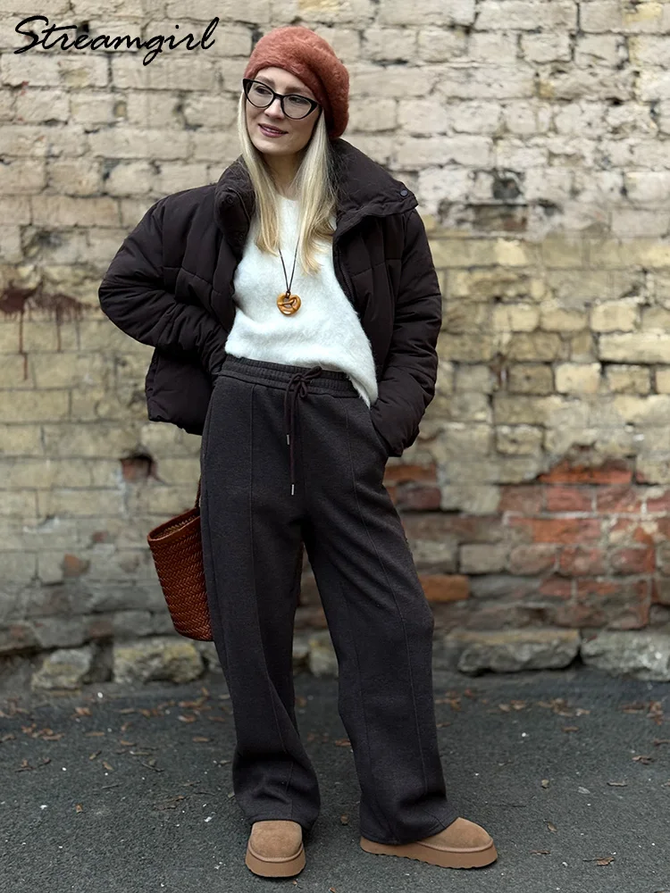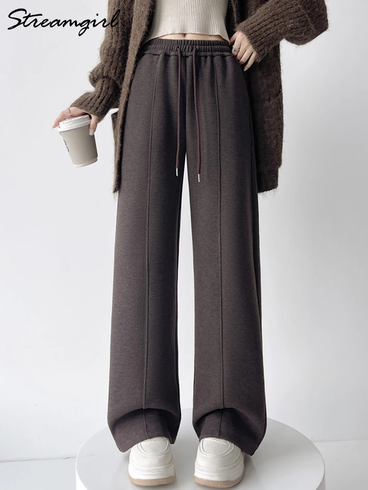 Streamgirl épais chaud pantalon droit pour les femmes bureau marron pantalon à jambes larges taille haute femmes pantalons amples pour dames printemps, pantalons hiver femme