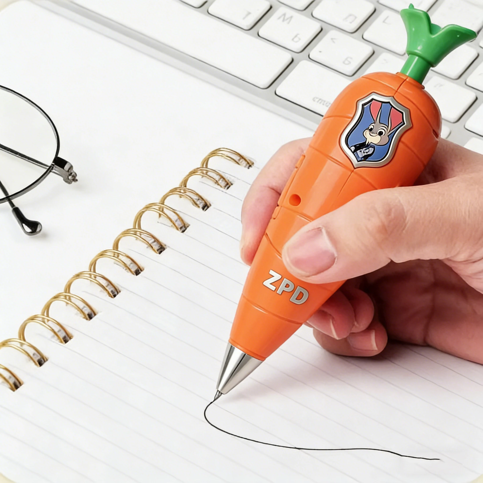Stylo enregistreur de carottes Disney Zootopia 2 | Style Judy & Nick pour les enfants | Mini enregistreur des années 60 | Papeterie stylo gel 2 en 1