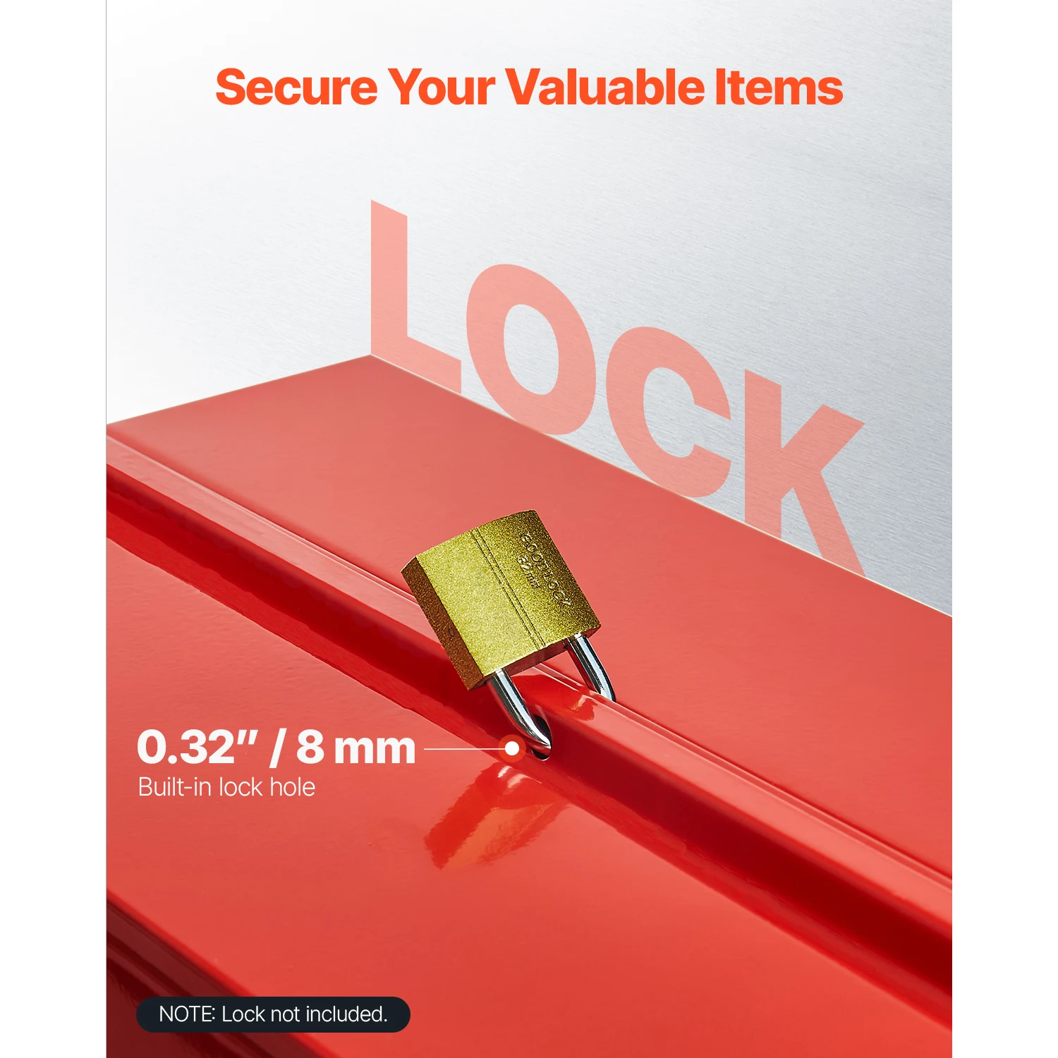 Sécurité fiable : avec un trou de verrouillage intégré qui s'adapte à un verrou de 0,32 pouce (vendu séparément), cette bote à outils maintient vos articles en sécurité et protégés contre le vol, offrant une tranquillité d'esprit lors de vos déplacements.