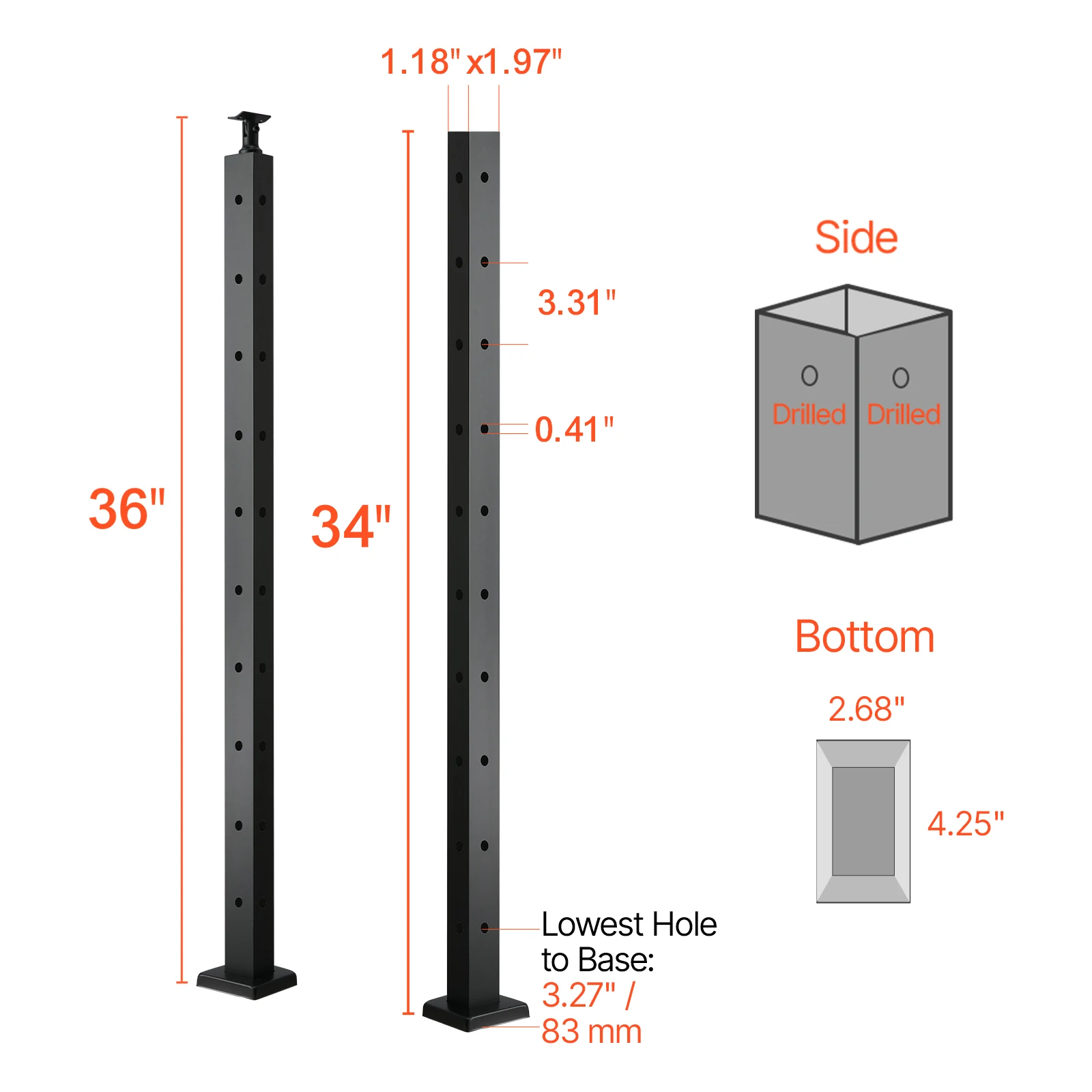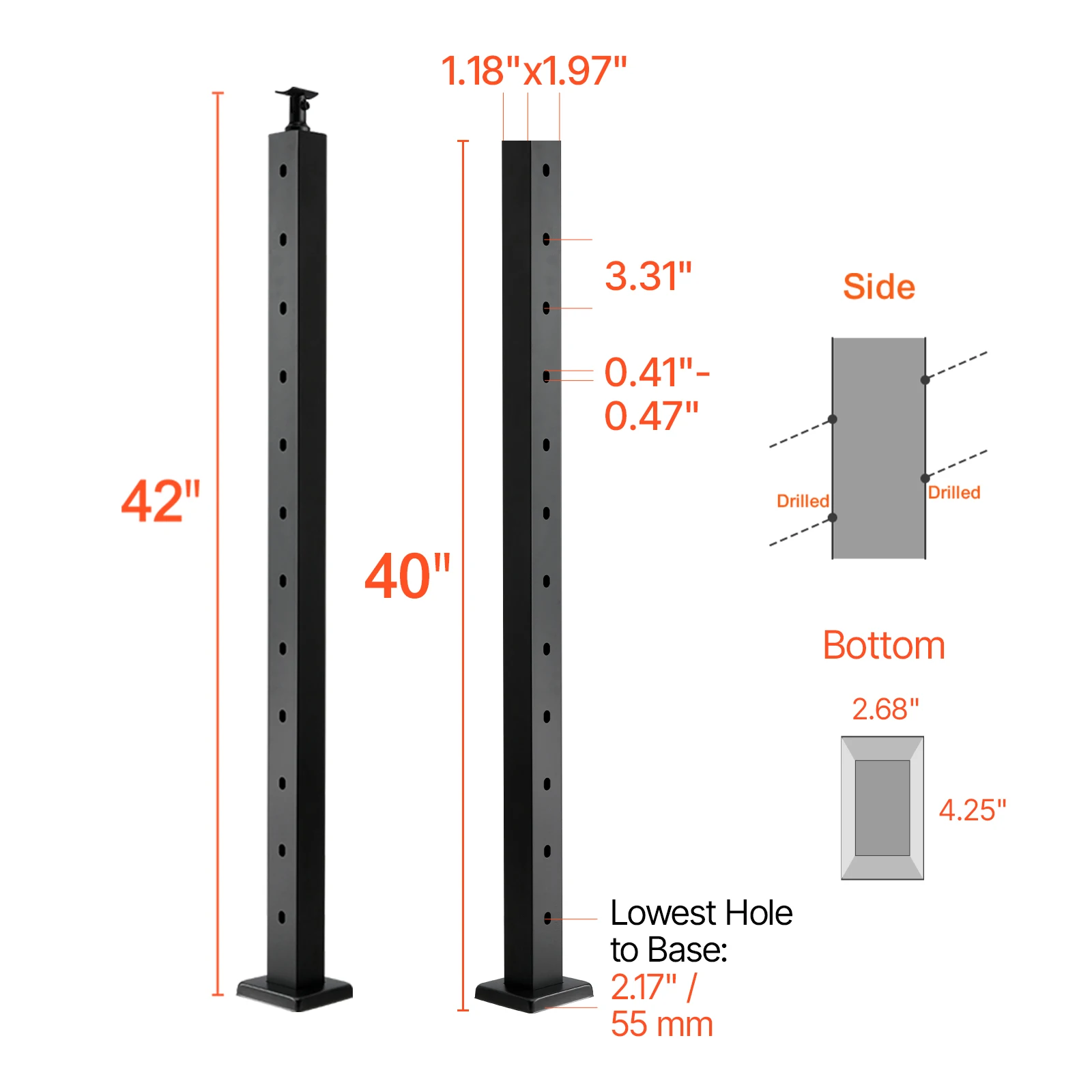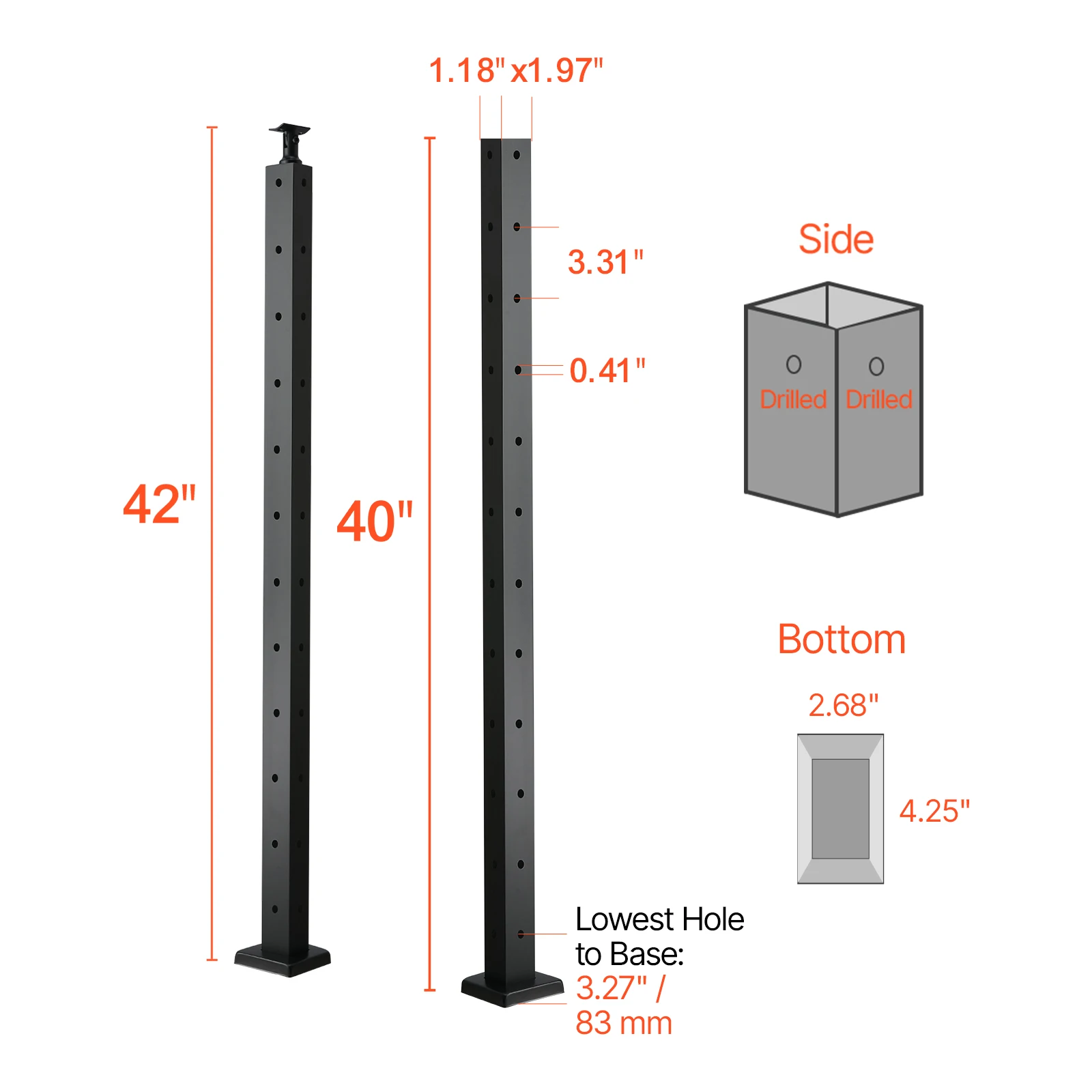 Tige de garde-corps à trou de type L : cette tige de garde-corps à câble de type L de 42 pouces est spécialement conçue pour les coins.Il est pré-percé avec 12 paires de trous de type L, adapté pour une utilisation sur des sections horizontales ou comme poteau d'extrémité pour les structures d'angle horizontales.Remarque : ce produit n'inclut pas les câbles métalliques