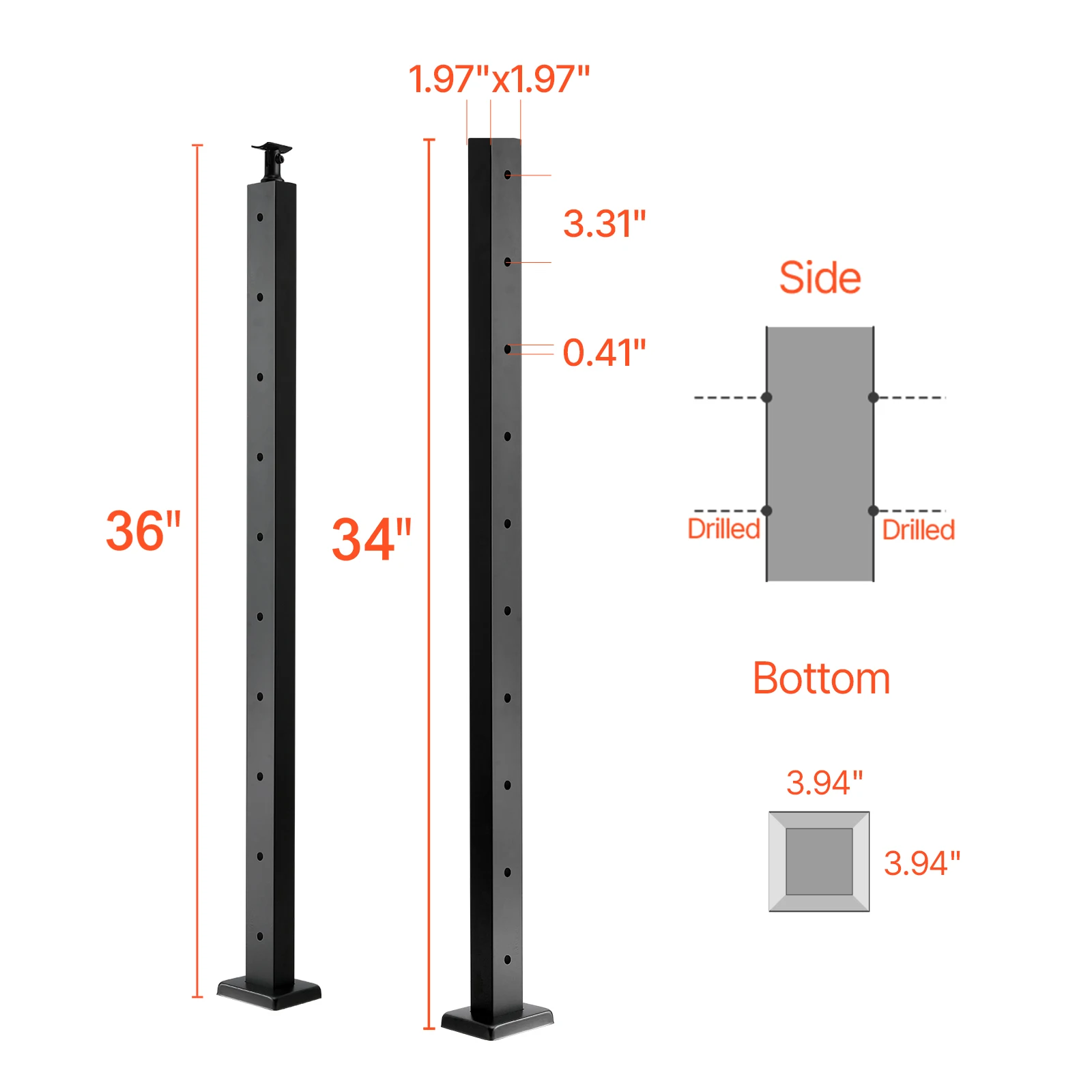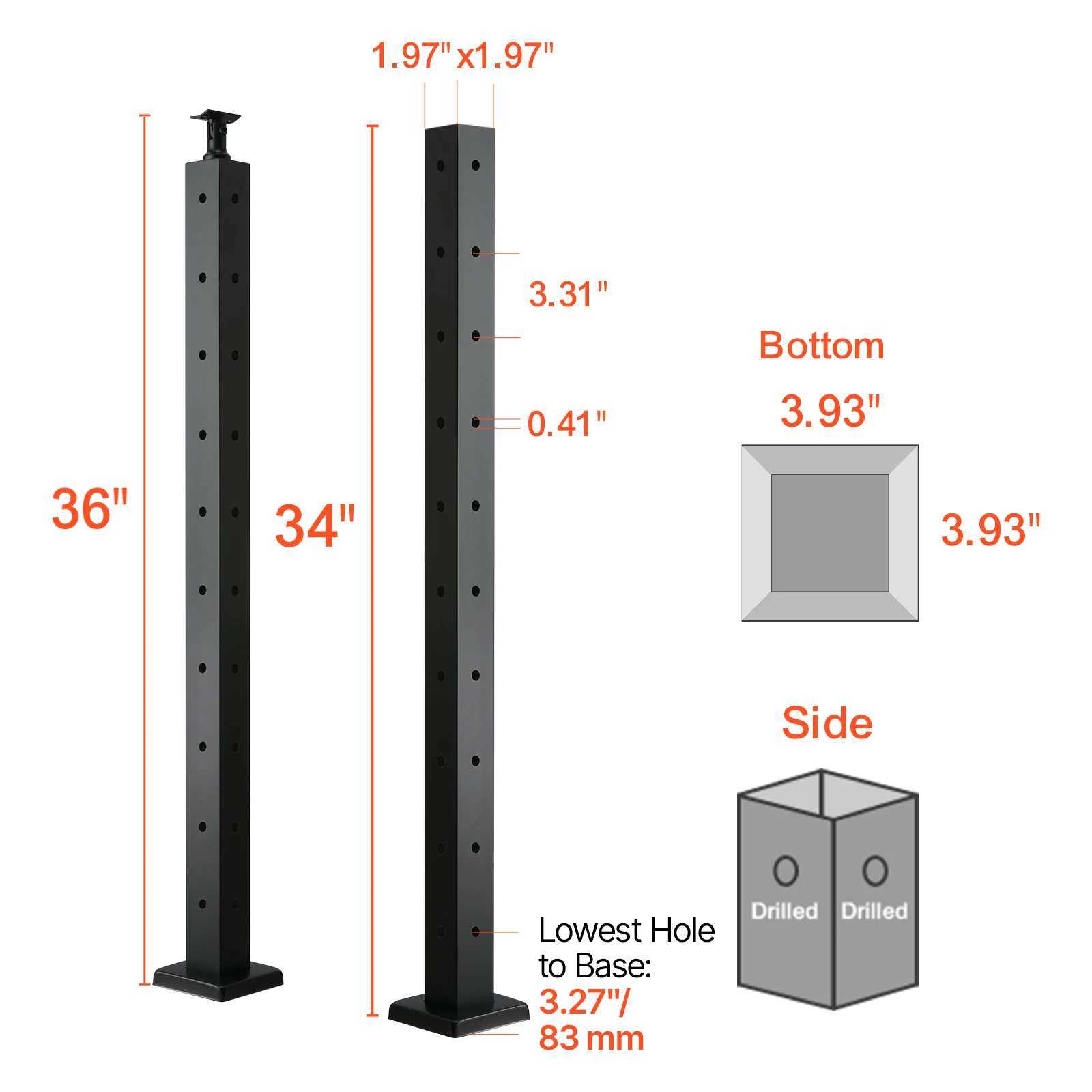Installation facile et bricolage : ce poteau de garde-corps de pont comprend des supports horizontaux et incurvés, adaptés à différents types de trous dans les poteaux de garde-corps.Il est compatible avec les mains courantes à tuyaux carrés et ronds, permettant la personnalisation DIY des angles de main courante
