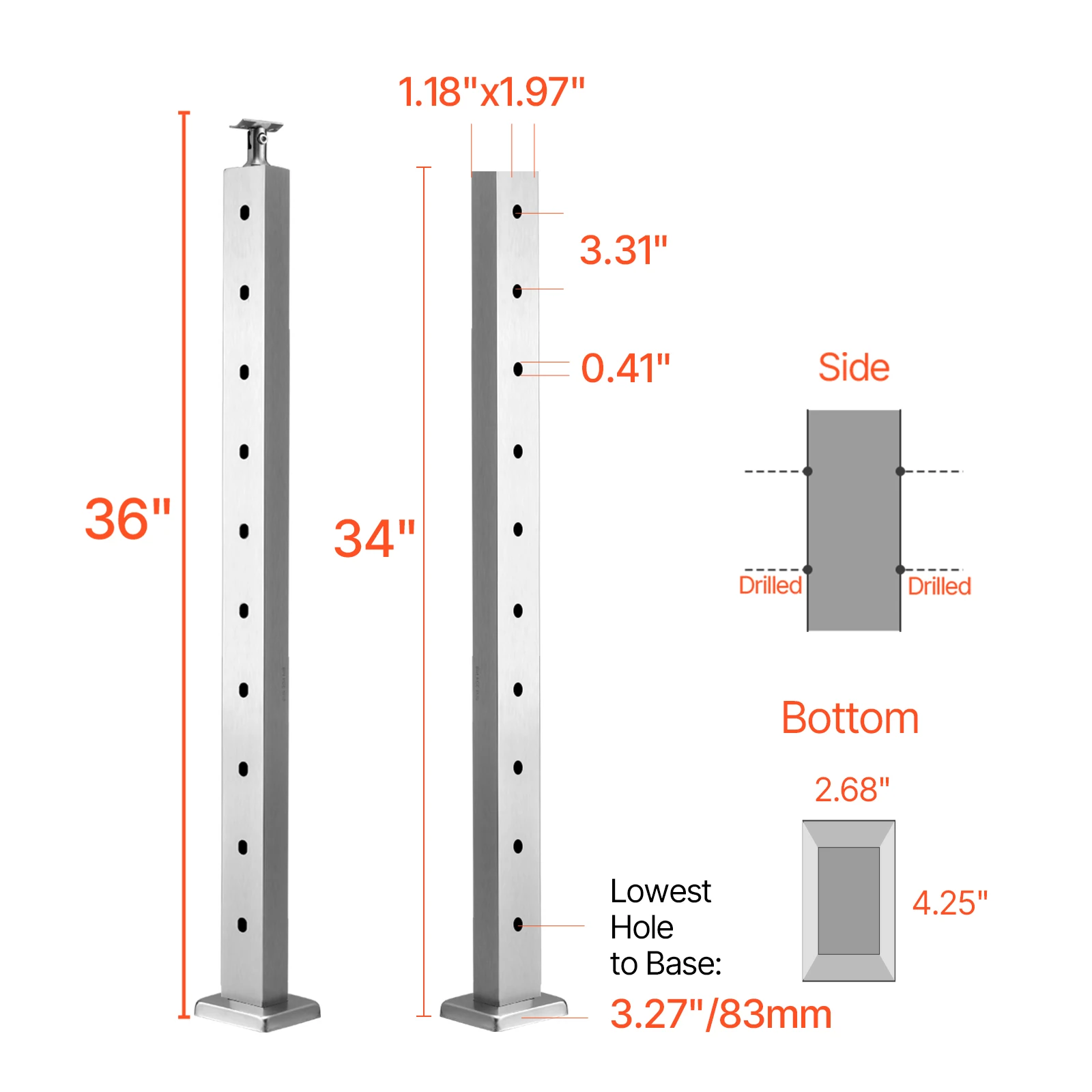 Découvrez le nouveau standard dans les poteaux de garde-corps!Fabriqué en acier inoxydable SUS304 durable, notre poteau de garde-corps à câble offre à la fois résistance et style.Facile à installer avec des trous pré-percés et des accessoires inclus, il est idéal pour sécuriser les ponts, les balustrades et bien plus encore, tout en répondant à toutes les exigences de code.
