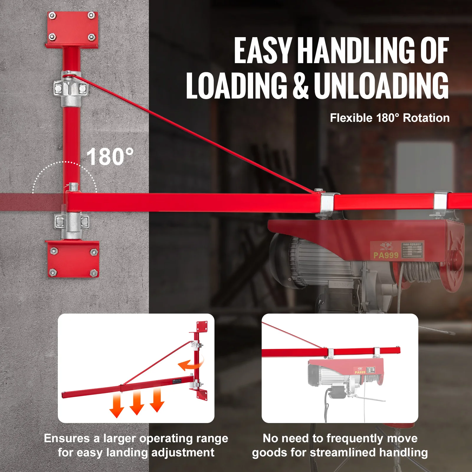 Multi-angle facile : réglage. Le bras de levage offre 180 réglage de l'angle, élargissant votre plage opérationnelle et rendant les tâches de levage plus efficaces sans repositionnement fréquent.