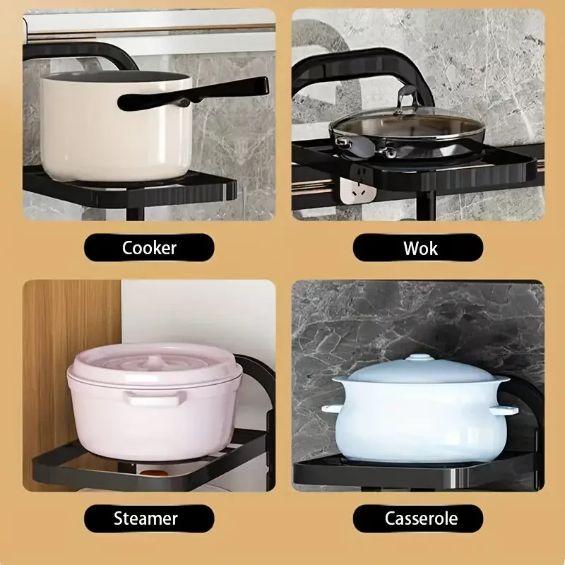 3.Améliorez votre cuisine : Plus besoin de fouiller sous des piles de casseroles pour trouver celles dont vous avez besoin.Empilez les ustensiles de cuisine sur ce support, gardez tout à portée de main lors de la cuisson et utilisez le support de rangement pour casseroles pour créer une cuisine soignée et organisée.