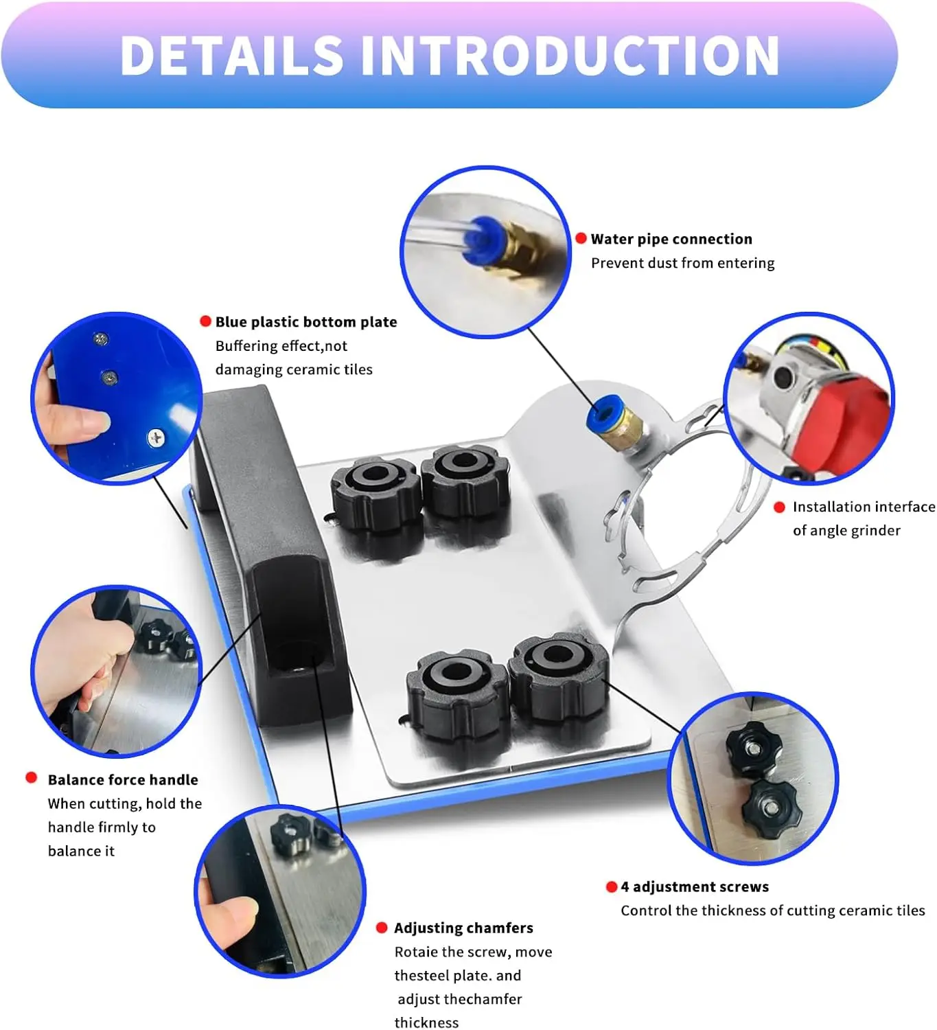 Support de meuleuse d'angle pour carrelage 45 ° Coupe de chanfrein, support de coupe spécial. Support fixe de meulage d'angle. Chanfrein de carrelage de meuleuse d'angle