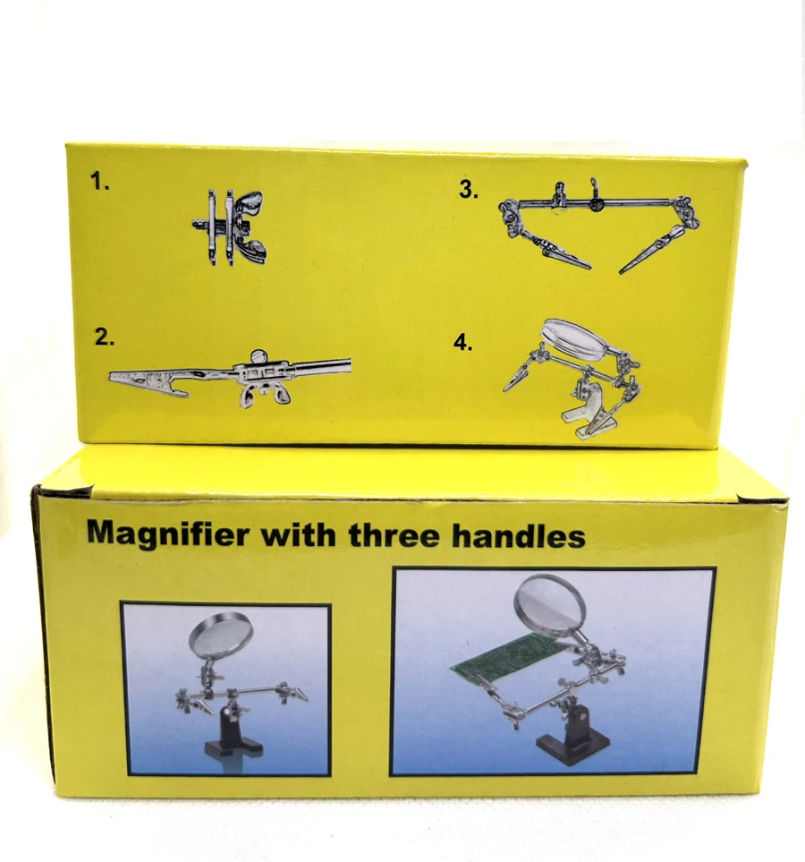 Produit Tout neuf et de haute qualité ; outil professionnel Pince de troisième main, loupe d'aide pour bijoutier sélectionnée L'outil pratique pour les travaux de soudure, l'électronique et le modélisme. Deux bras de verrouillage réglables avec mâchoires à pince crocodile et loupe peuvent être configurés de plusieurs façons. Tous les points sont pivotants et peuvent être fixés à la position ou à l'angle souhaité. Pince de troisième main, loupe d'aide pour bijoutier sélectionnée L'outil pratique pour les travaux de soudure, l'électronique et le modélisme. Deux bras de verrouillage réglables avec mâchoires à pince crocodile et loupe peuvent être configurés de plusieurs façons. Tous les points sont pivotants et peuvent être fixés à la position ou à l'angle souhaité. Loupe : Lentille en verre 2-1/2" avec cadre en métal chromé La base en fonte lourde et robuste empêche le mouvement du travail. Grossissement : 5X Base : fer à cheval en fonte noir Supports : 2 pinces crocodiles montées sur une barre à bras transversal Rotation : émerillons à 360 degrés Diamètre de la lentille en verre : 62 mm. Taille de l'article: 130*100*150mm Remarque : la loupe peut être retirée et l'outil peut être utilisé seul. matériau : métal Le forfait comprend: 1 x outil d'ingrandissement de troisième main (avec clips) Remarque : la prise de vue en raison de la lumière et les différents affichages peuvent rendre la couleur de l'élément de l'image légèrement différente de la réalité. L'erreur de mesure autorisée est de +/- 1 à 3 cm.