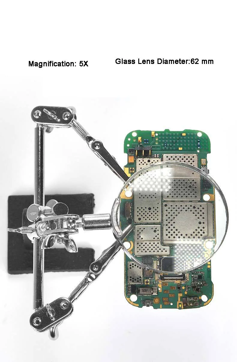 Support de soudure pour outil de troisième main, avec loupe de soudage 5X, 2 pinces crocodile, outils de réparation Adju rotatifs à 360 degrés