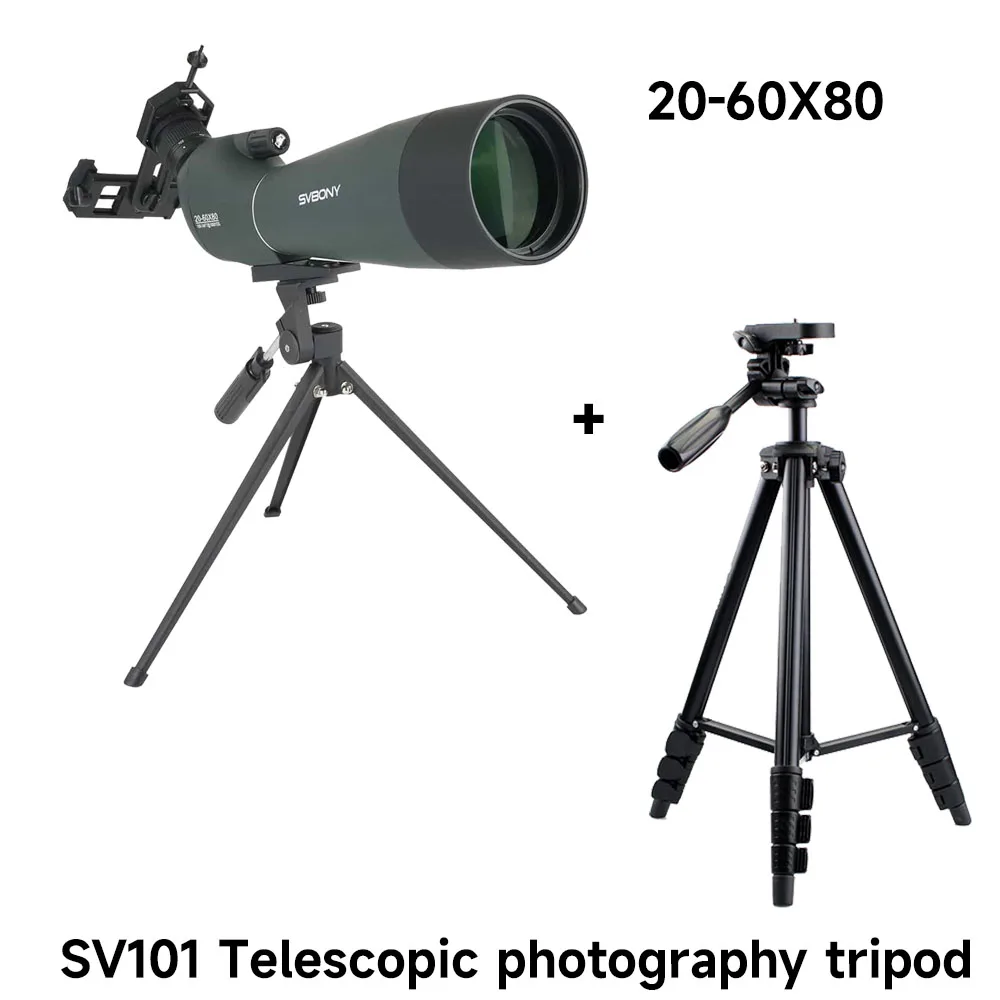 Svbony SV28A Prismes de télémétrie 25-75x100/20-60x80 FMC, avec trépied de bureau et adaptateur pour smartphone, pour l'observation de la faune et les aventures outdoor