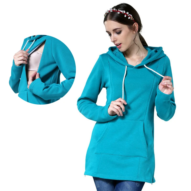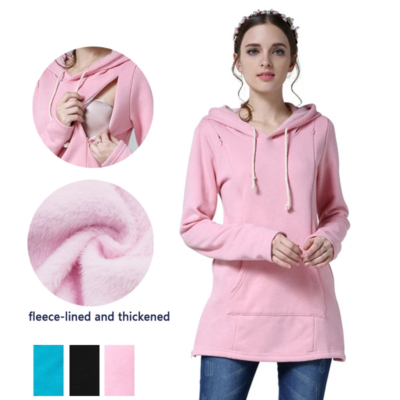Sweat à capuche d'allaitement ample pour grossesse, pull d'hiver épais, vêtements de maternité, hauts d'allaitement pour femmes enceintes