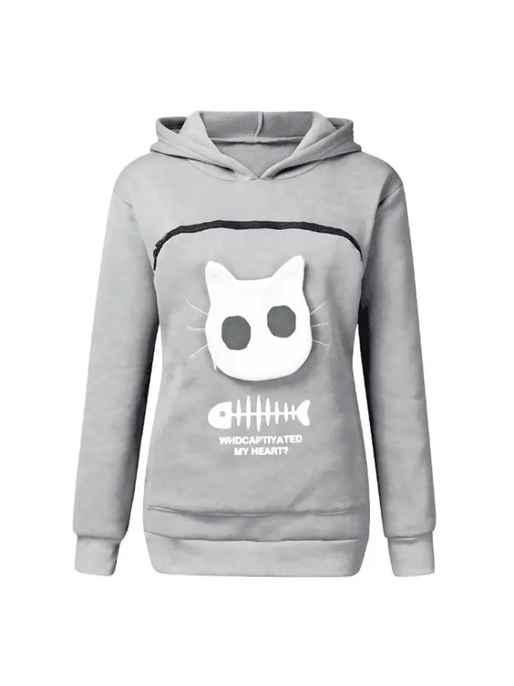 Sweat-shirt à capuche pour amoureux des chats 3XL, kangourou, chien, patte d'animal de compagnie, livraison directe, pulls, pochette câlin, poche de poisson, hauts à capuche