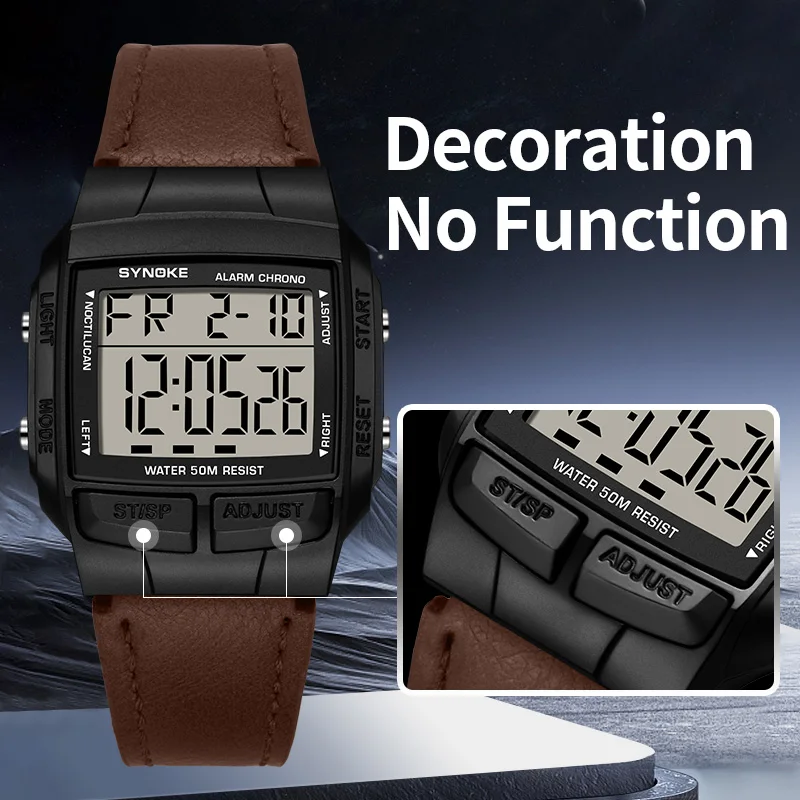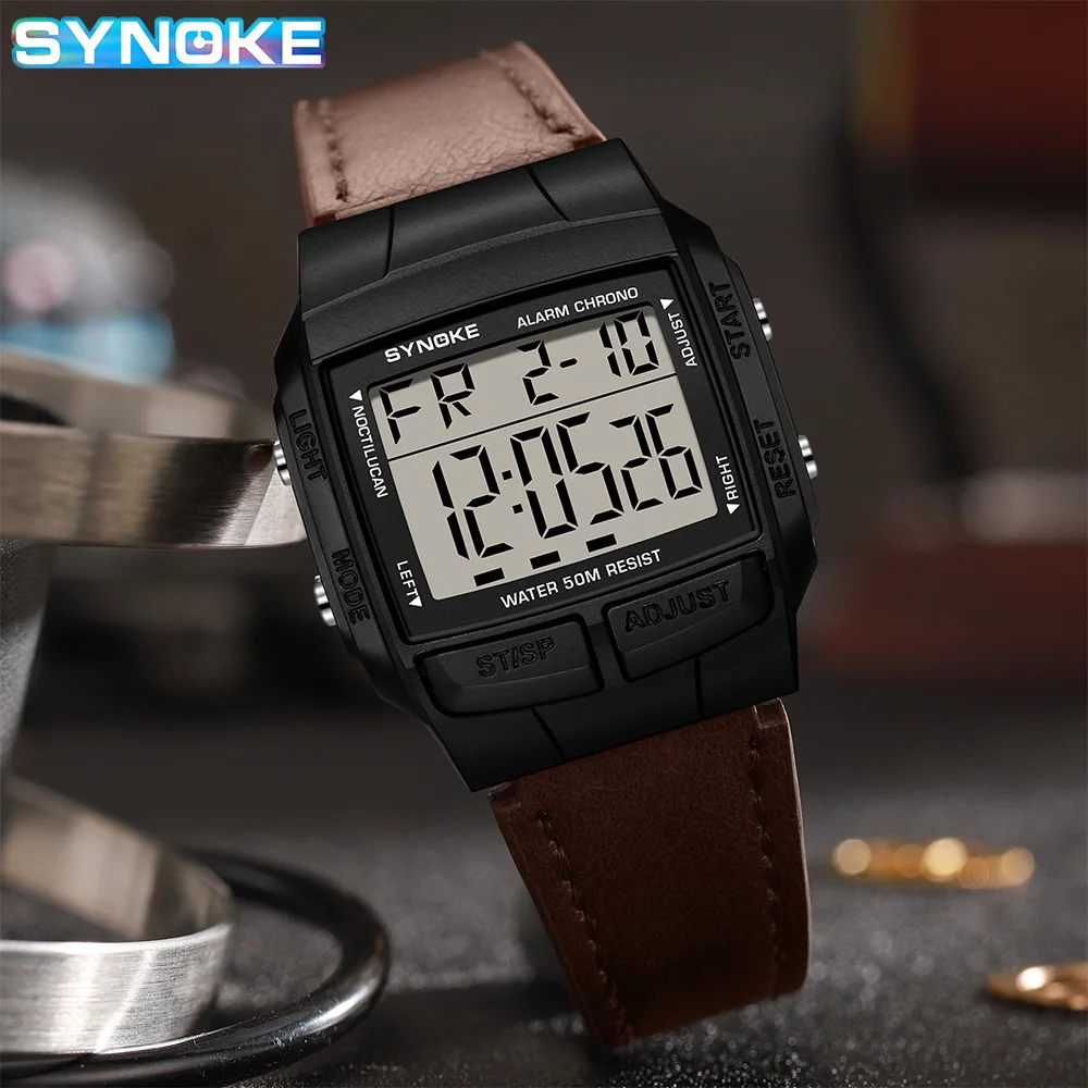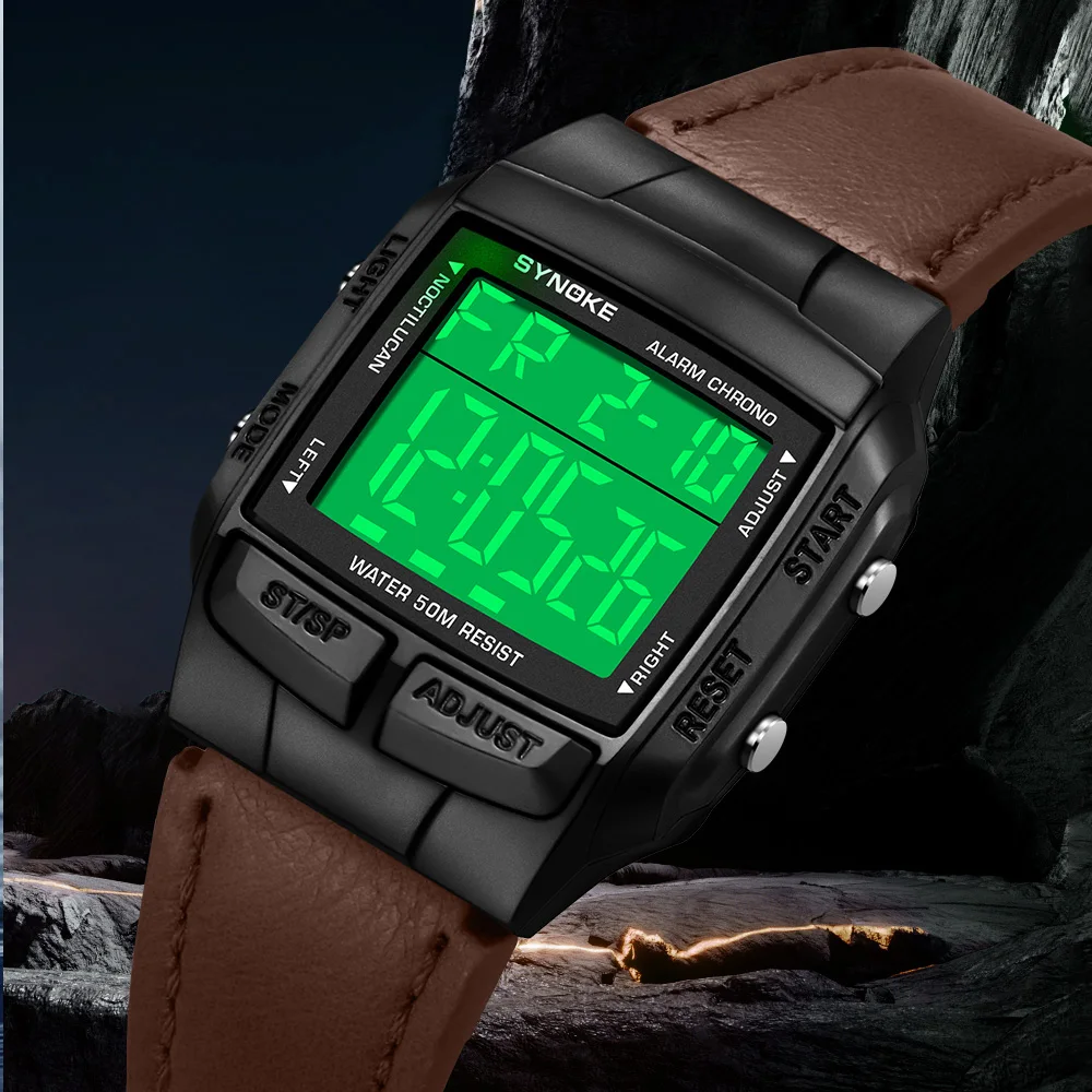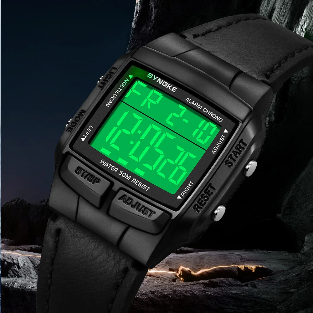 SYNOKE ceinture montre hommes Sports de plein air multifonctionnel étanche grand écran affichage lumineux LED numérique pour hommes rétro mode