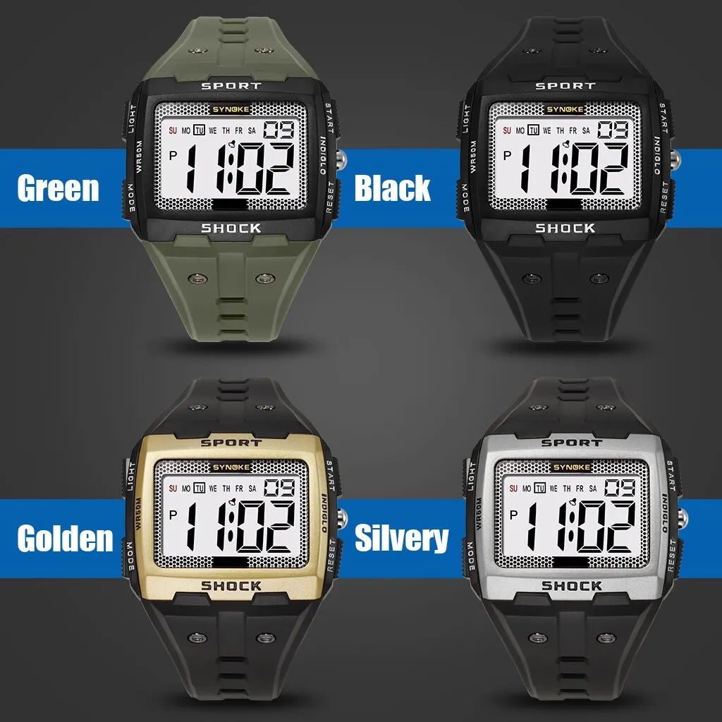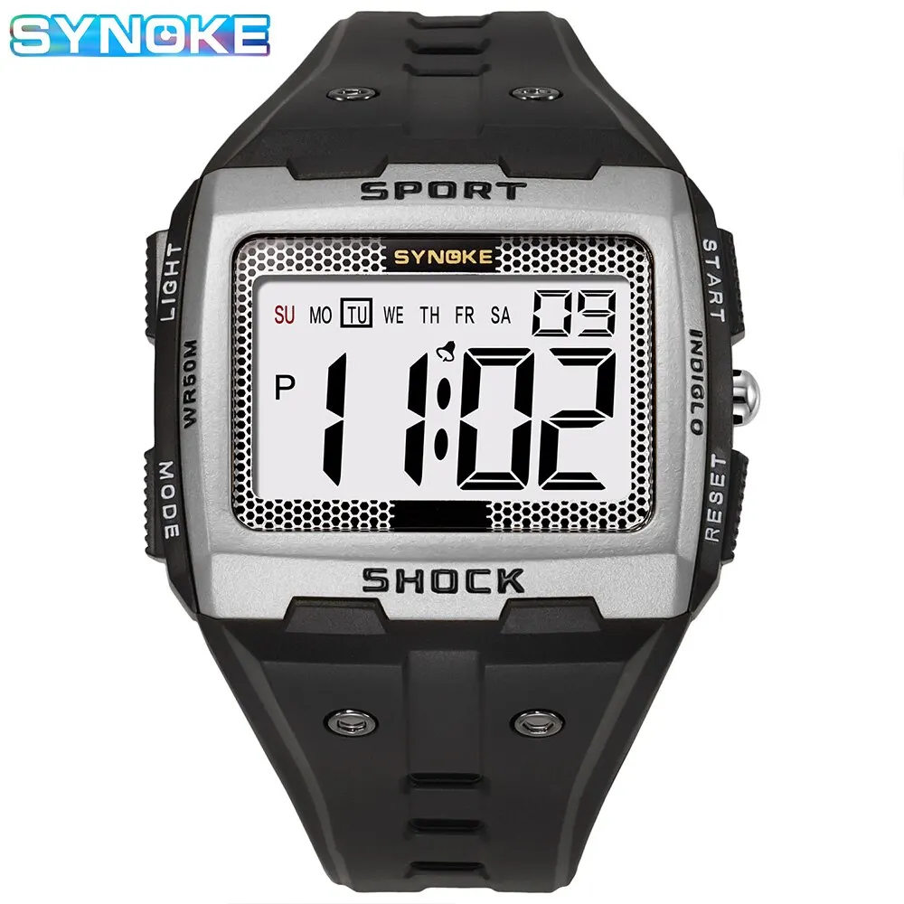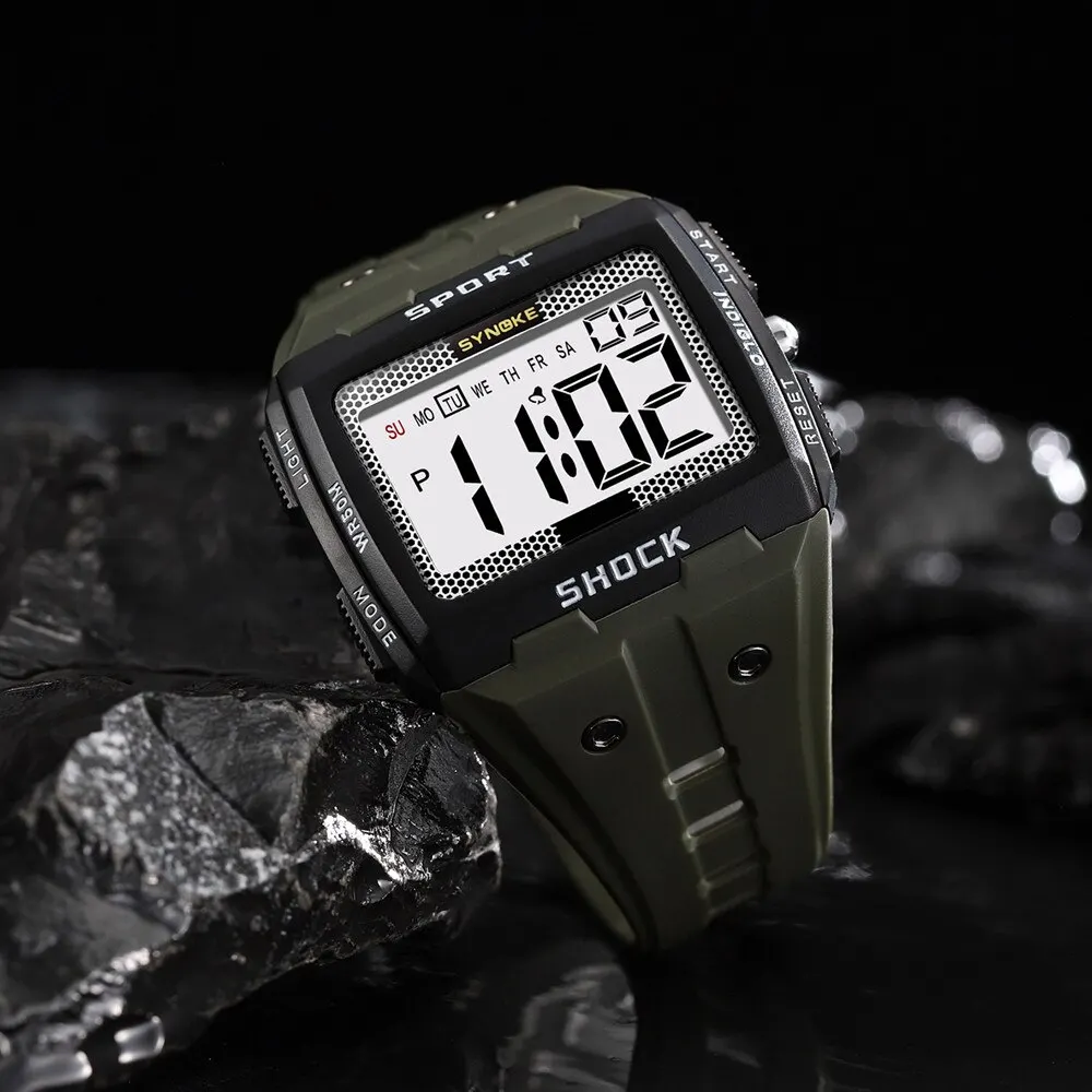 SYNOKE-montre électronique de sport pour hommes, montre-veilleuse étanche | grand écran carré | course en plein air | camping | montre de veille pour étudiants