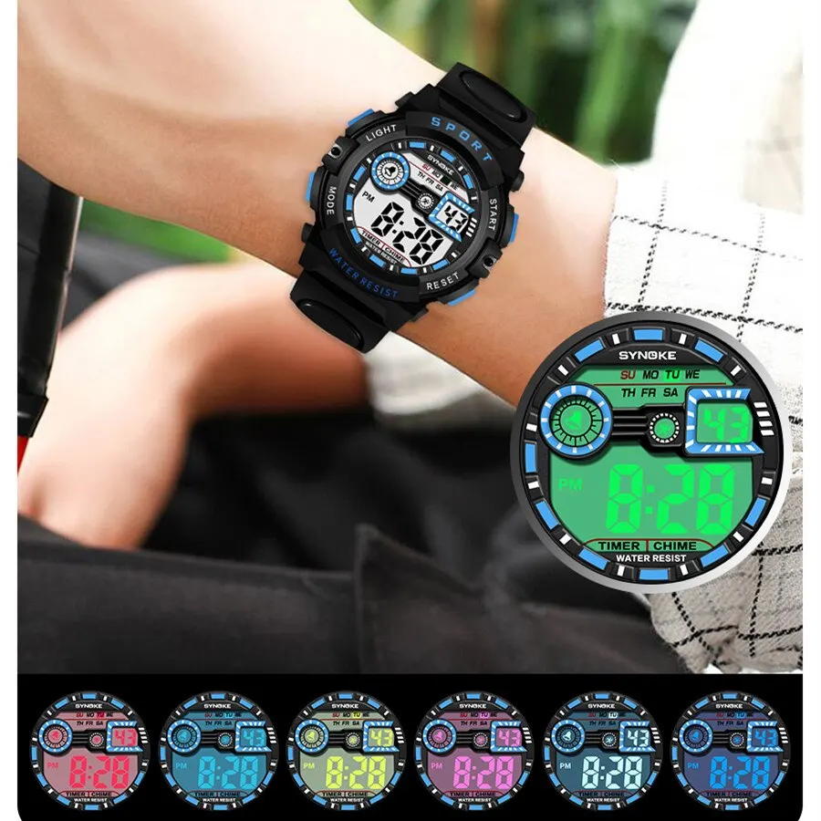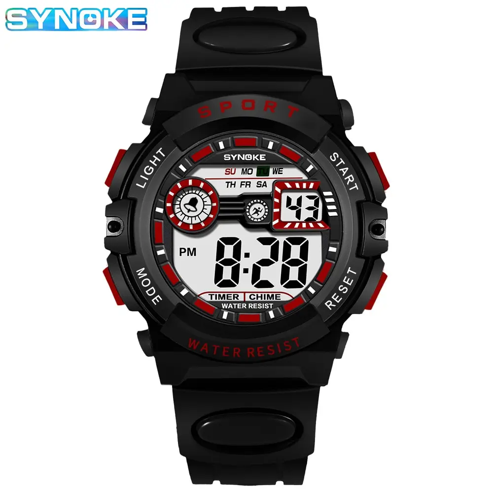 SYNOKE Montre électronique à mouvement étudiant pour homme étanche, antichute et résistant aux chocs montre de sport multifonction lumineuse