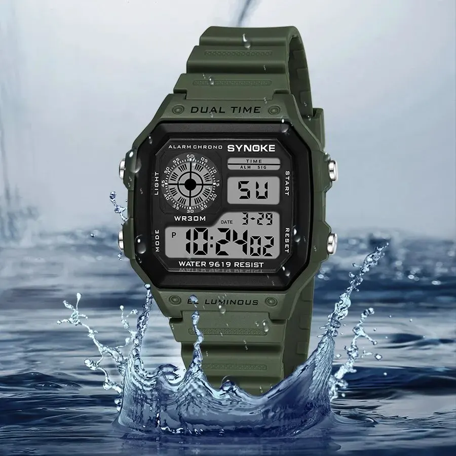 SYNOKE Montres numériques pour hommes, montre-bracelet de sport multifonction étanche multifonction pour l'extérieur et courir à sept lumières pour étudiants