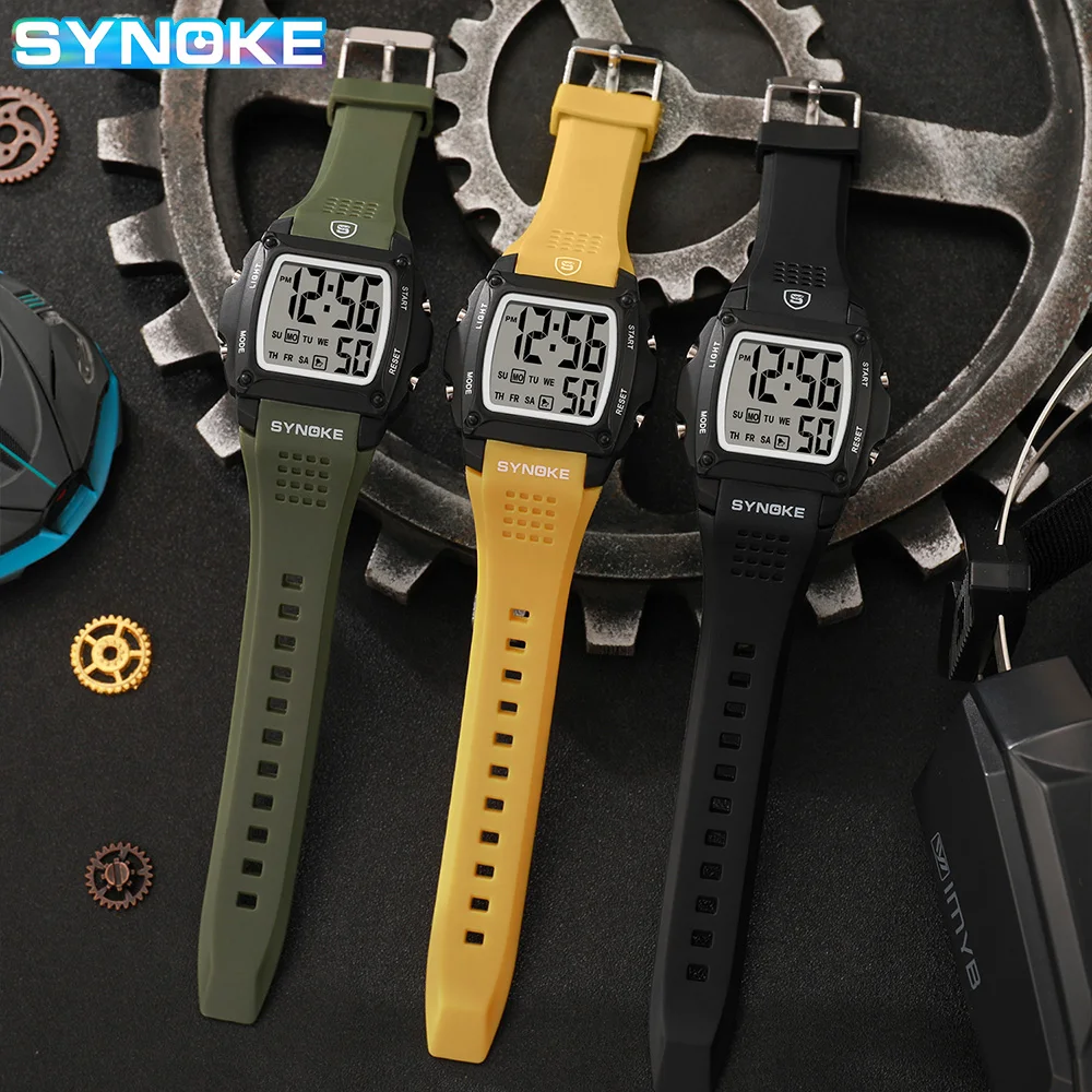 SYNOKE montres numériques hommes sport militaire chronographe lumineux étanche mâle montres-bracelets électroniques rétro mode étudiant