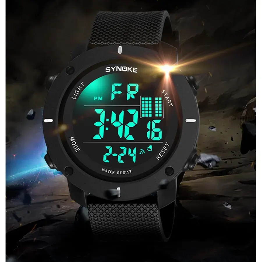 • Résistant à l'eau jusqu'à 5Bar :Ce montre numérique SYNOKE est résistant à l'eau jusqu'à une profondeur de 5Bar, ce qui le rend idéal pour les activités de plein air comme la natation ou la pêche.