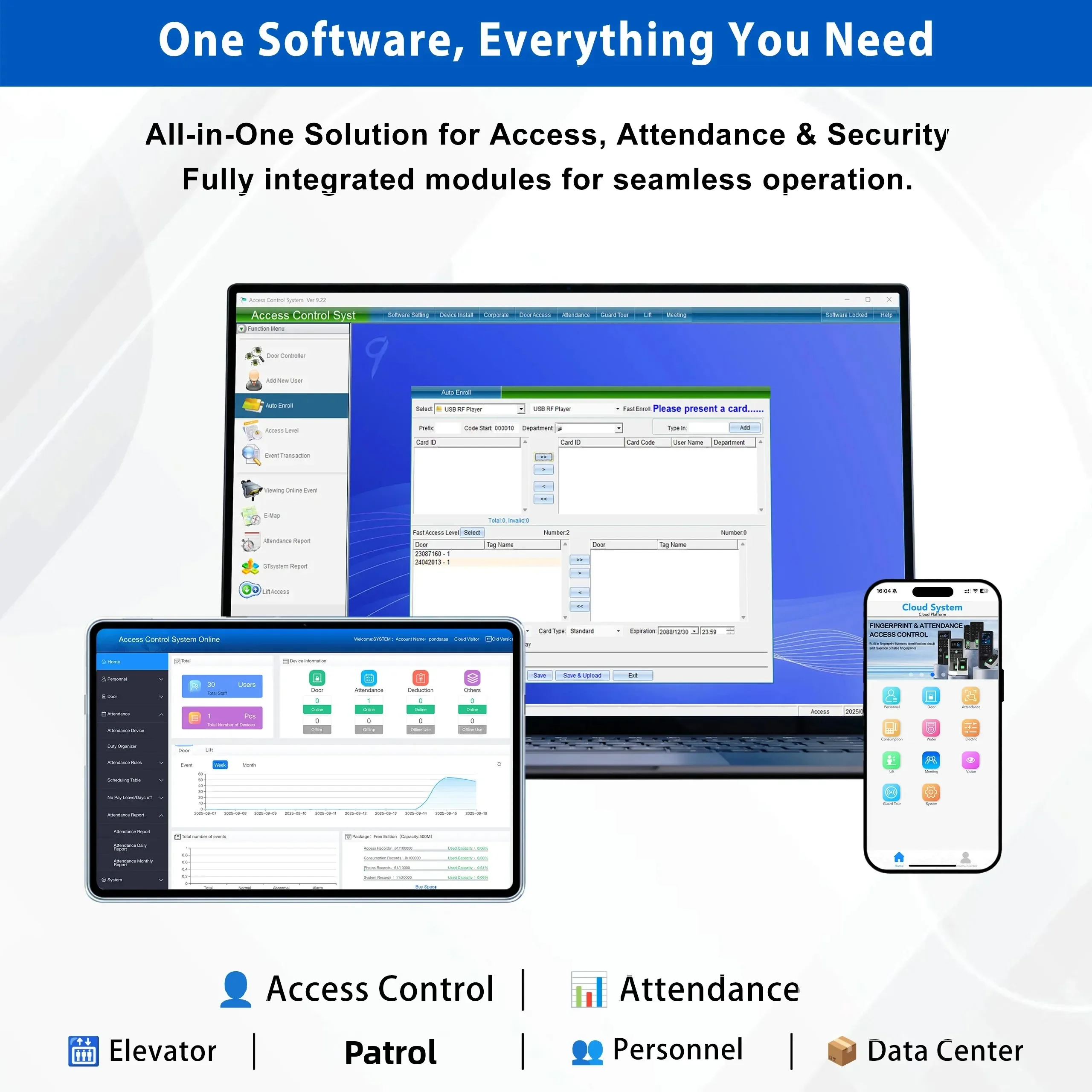 Capacité utilisateur : 5 000 faces ; 5 000 codes QR ; 5 000 cartes ; 5 000 mots de passe ; 5 000 empreintes digitales ; 5 000 paumes