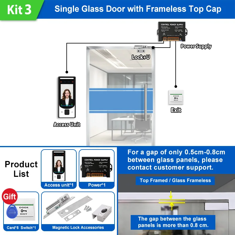 Autres interfaces : bouton de sortie x1, capteur de porte x1, sortie d'alarme x1, sortie Wiegand x1, contrôle de verrouillage magnétique x1