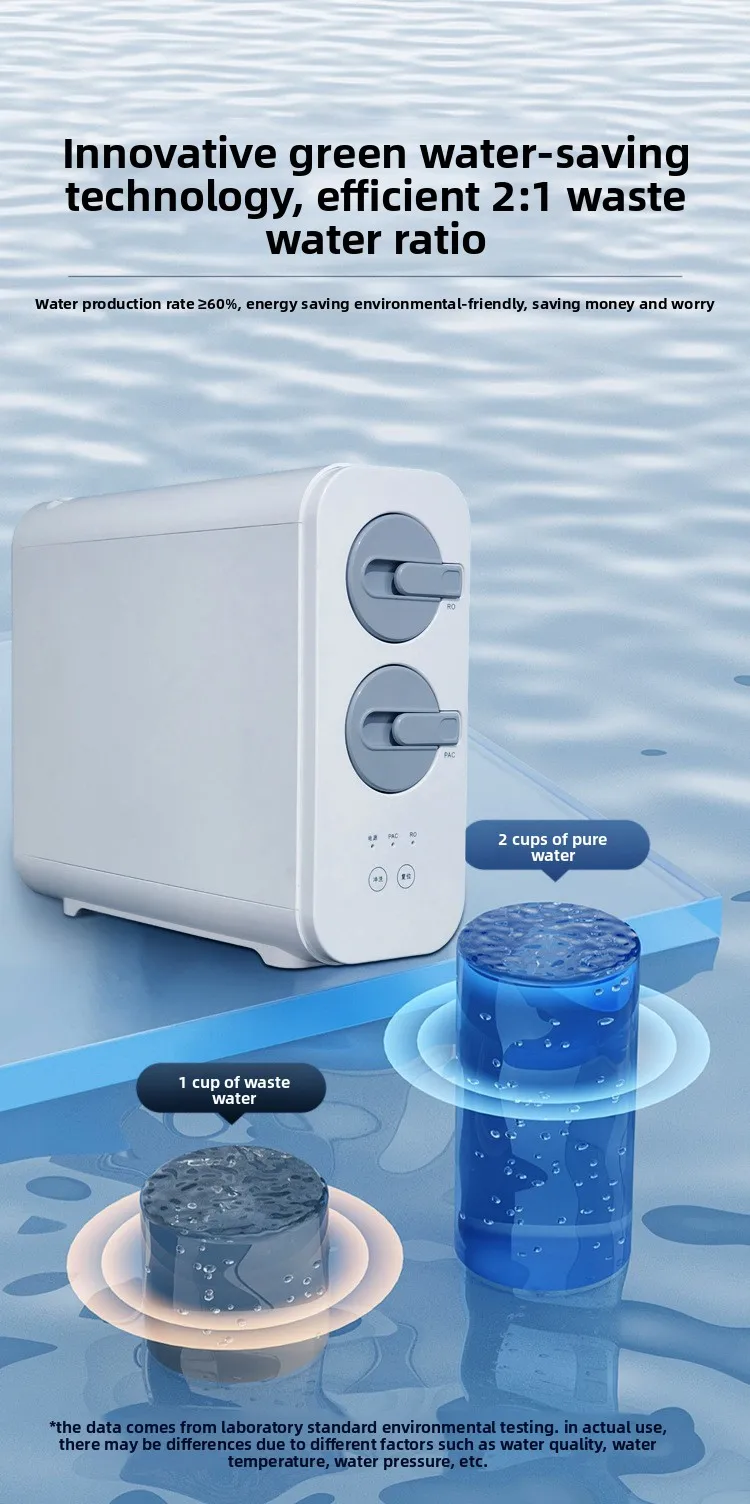 Le système d'osmose inverse de 800 Go produit moins d'eaux usées, la distribution de 2 tasses d'eau pure produira seulement 1 tasse d'eaux usées.