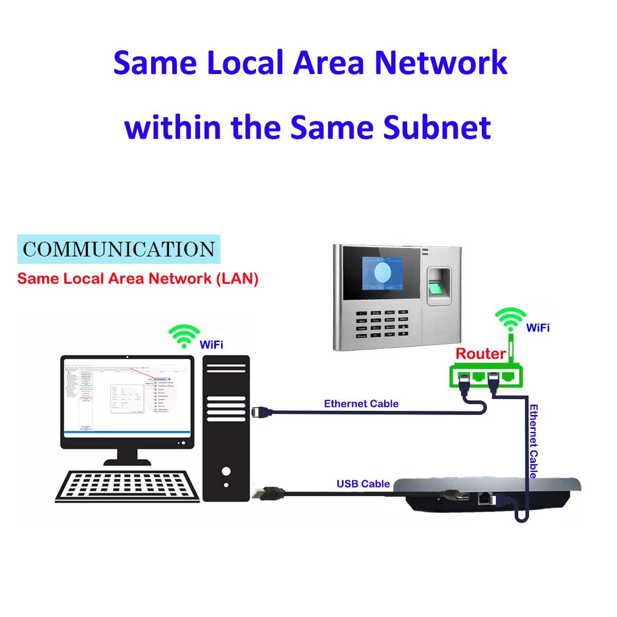 WiFi,TCP/IP, communication par câble d'USB