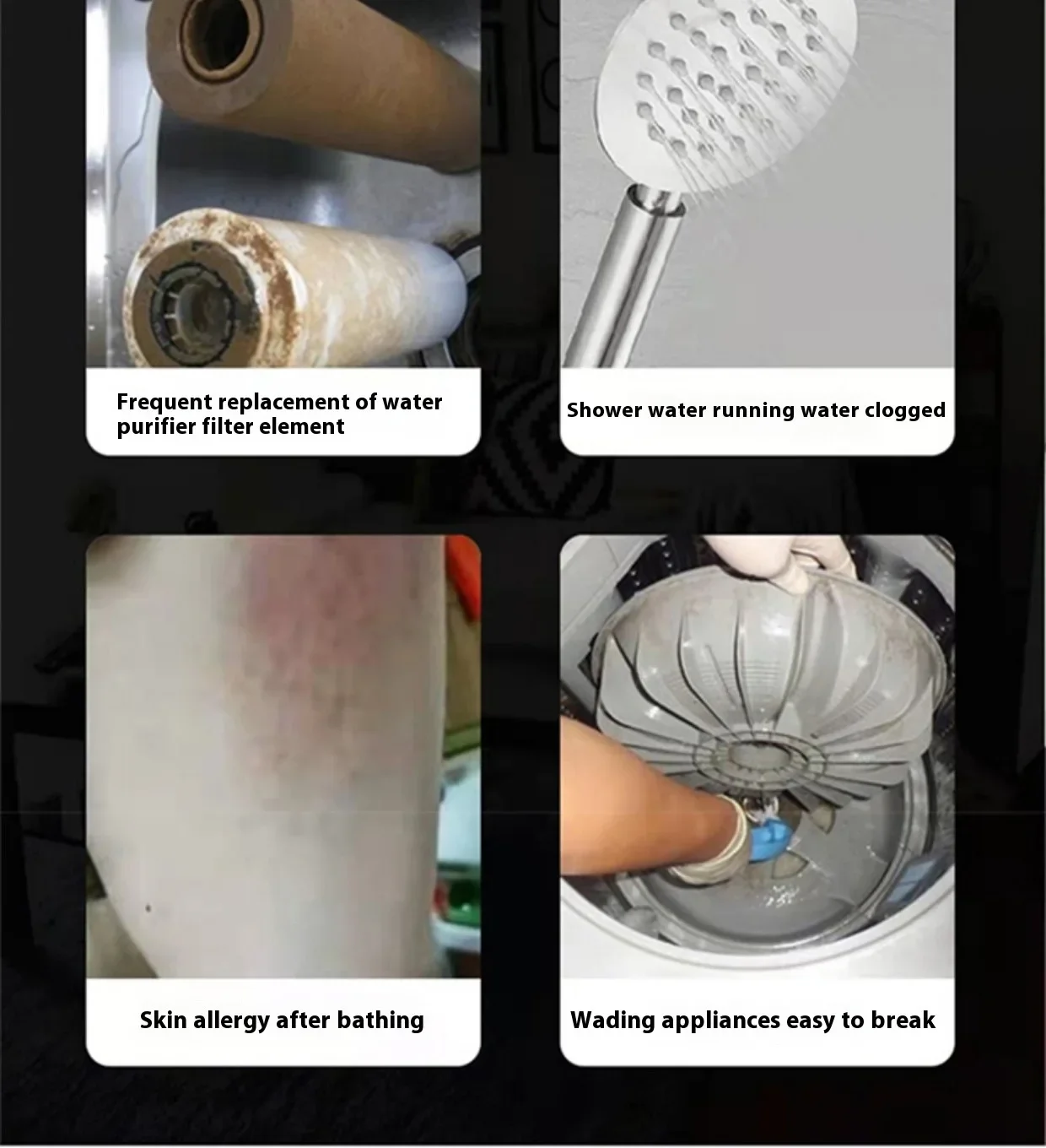 ●Réduit la création du calcaire sur les éléments d'alimentation en eau – efficacité de 86 %. Prolonge leur durée de vie et leur efficacité (tuyaux, vannes, robinets, mitigeurs, pommes de douche, chauffe-eau, chaudière, bouilloire d'appareils électroménagers).