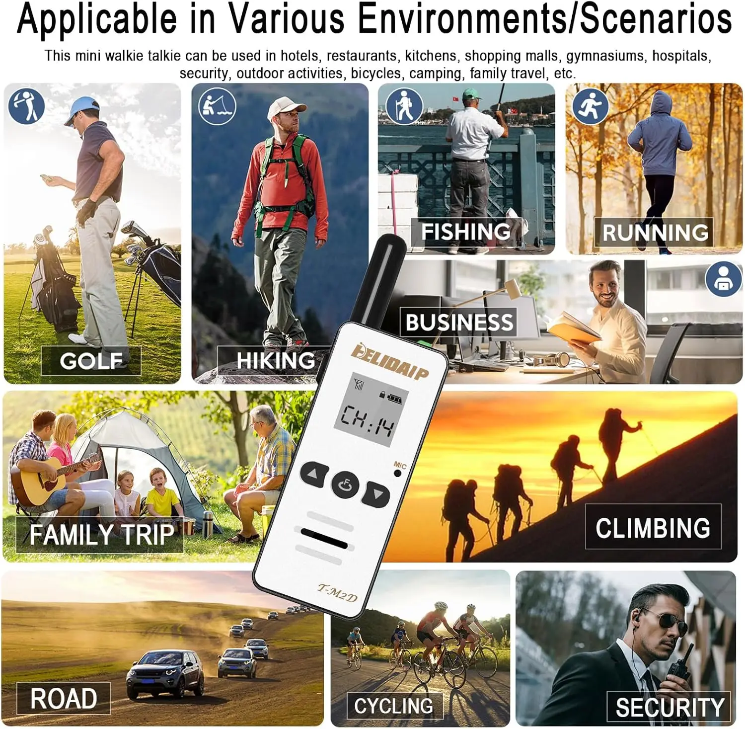 HELIDA Mini radio bidirectionnelle T-M2D 2W FRS GMRS UHF 400-520MHz Mini talkie-walkie pour l'extérieur et l'intérieur
