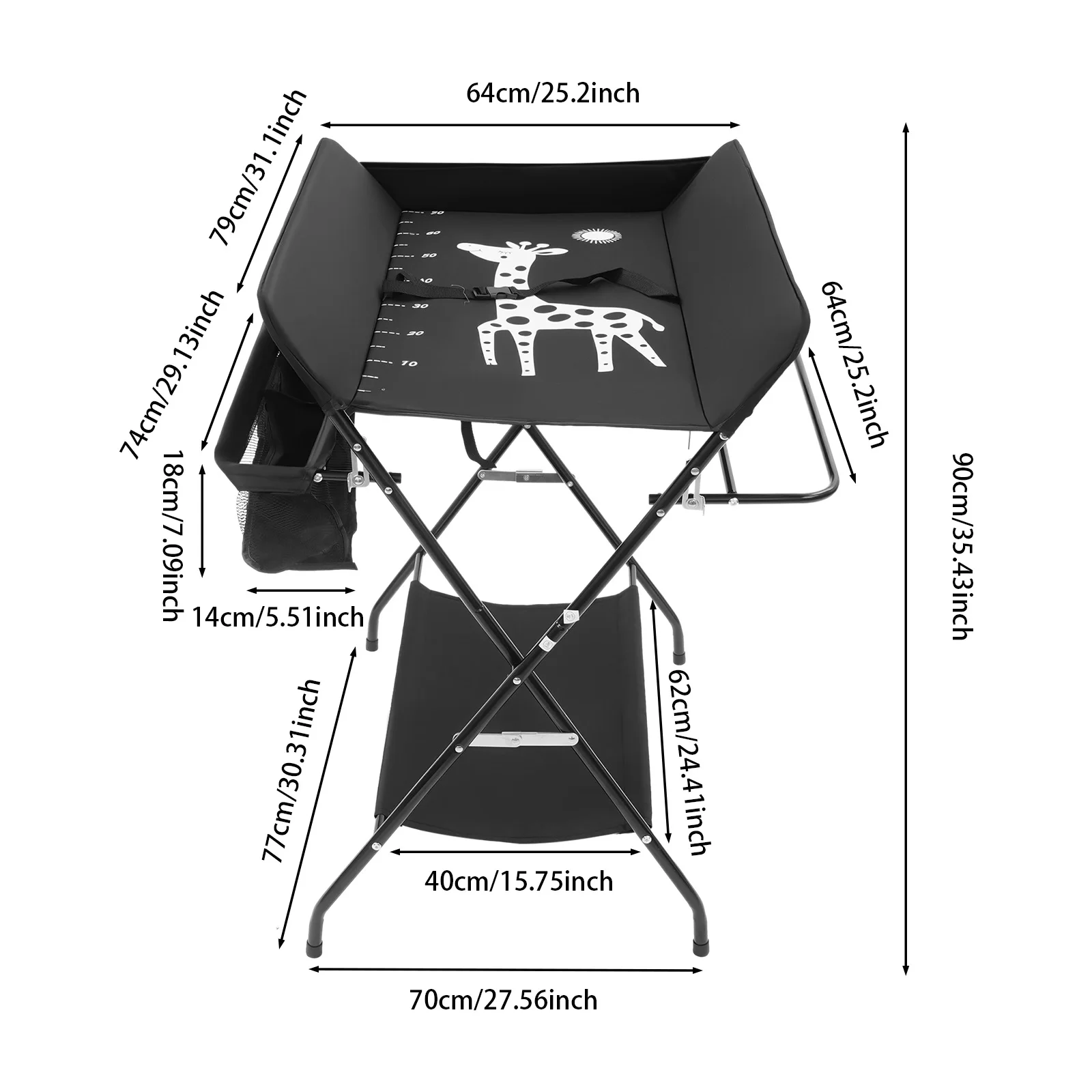 Cette table à langer facilite la vie des parents.La hauteur appropriée est conçue pour réduire les maux de dos de maman sans se pencher pour changer de vêtements ou de couches.Le support de rangement, le panier et le porte-serviettes vous permettent de placer facilement des couches, des serviettes et d'autres accessoires.Pliez-le facilement et vous pourrez le ranger derrière une porte lorsqu'il n'est pas utilisé ou le mettre dans le coffre lorsque vous sortez.