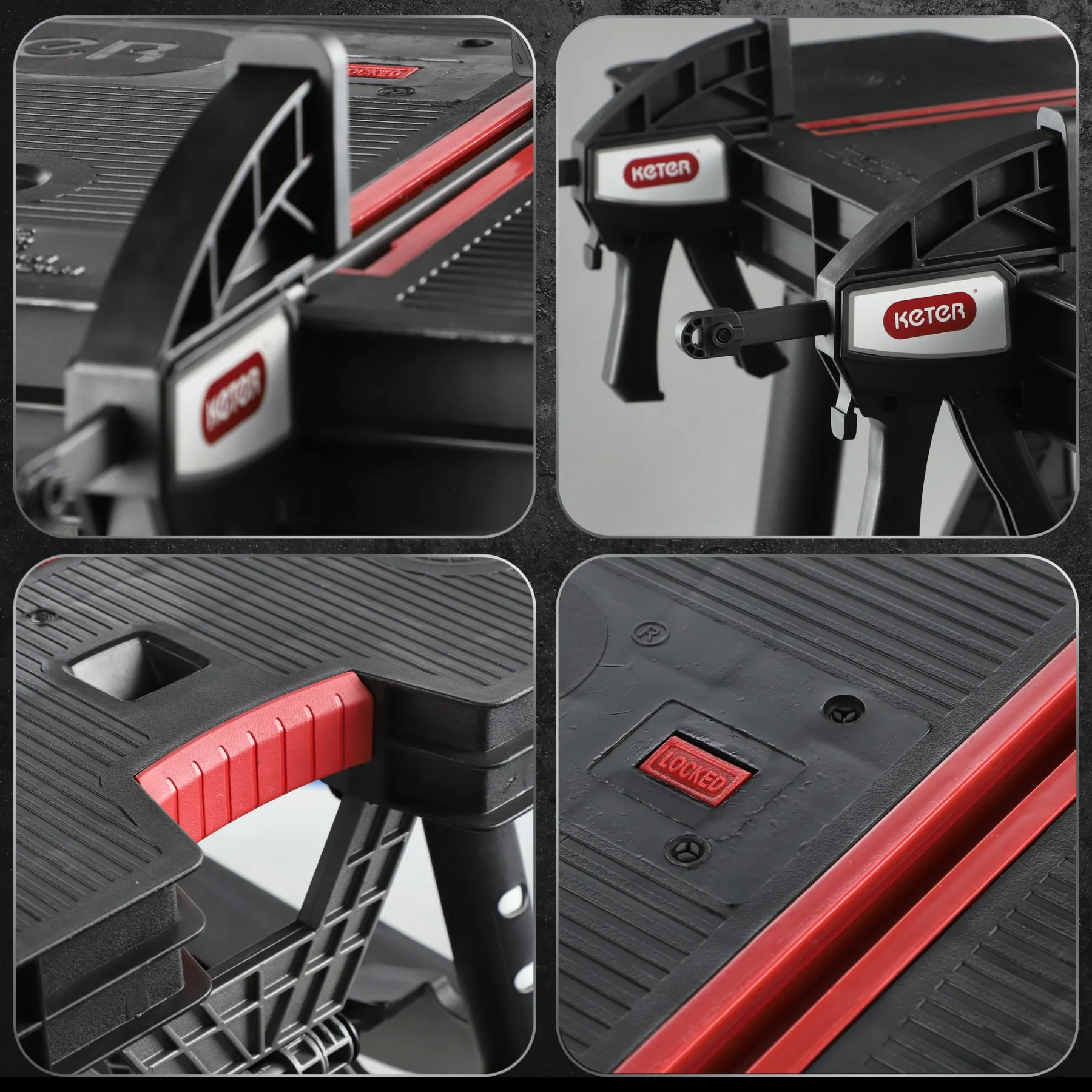 Notre table vous sera utile absolument partout! Vous l'utiliserez dans un atelier de réparation de voiture: commodément Tinker, arranger des outils ou tordre des pièces. De plus, vous l'utiliserez dans l'atelier de menuiserie pour travailler ou peindre des planches et des boiseries, ou pour des tâches ménagères dans votre unité de stockage personnelle. Atteignez maintenant notre confortable table pliante Keter et profitez d'un accessoire professionnel dans vos quatre angles!